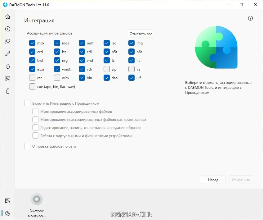 - Быстрое подключение и отключение виртуальных приводов