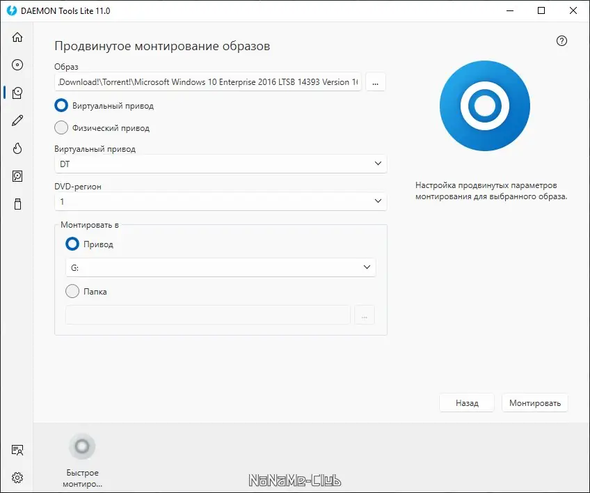 Использование DAEMON Tools Lite не требует глубоких технических знаний. После установки в системном трее появляется иконка программы, через контекстное меню которой можно добавлять образы на виртуальные приводы. Достаточно выбрать нужный файл и указать, на каком из доступных приводов его смонтировать. Букву диска и региональные параметры можно настроить вручную, если требуется. Для создания образа с физического диска используется встроенный инструмент записи, который поддерживает форматы MDX, MDS и ISO. Все добавленные образы можно сохранять в каталоге программы для быстрого доступа.