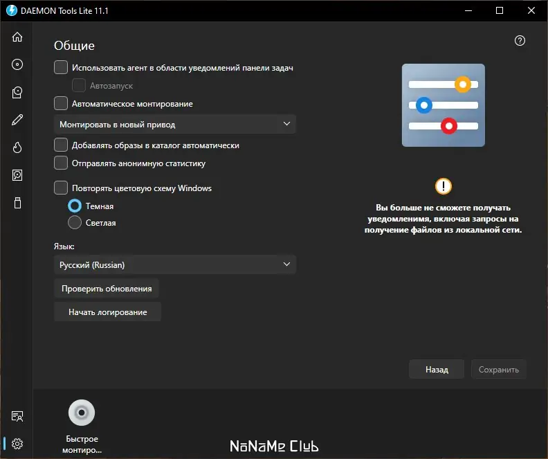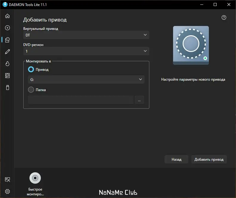После установки программа добавляет иконку в системный трей, через которую осуществляется основное управление. Пользователь может выбрать образ диска, щёлкнуть по нужному виртуальному приводу и смонтировать файл за несколько секунд. Каждый привод настраивается индивидуально: можно назначить букву, изменить региональные параметры и управлять подключением через контекстное меню. Для удобства все используемые образы можно добавить в каталог программы, обеспечивая быстрый доступ к ним в будущем. Также доступна функция создания образов с физических дисков, что полезно для архивирования данных.