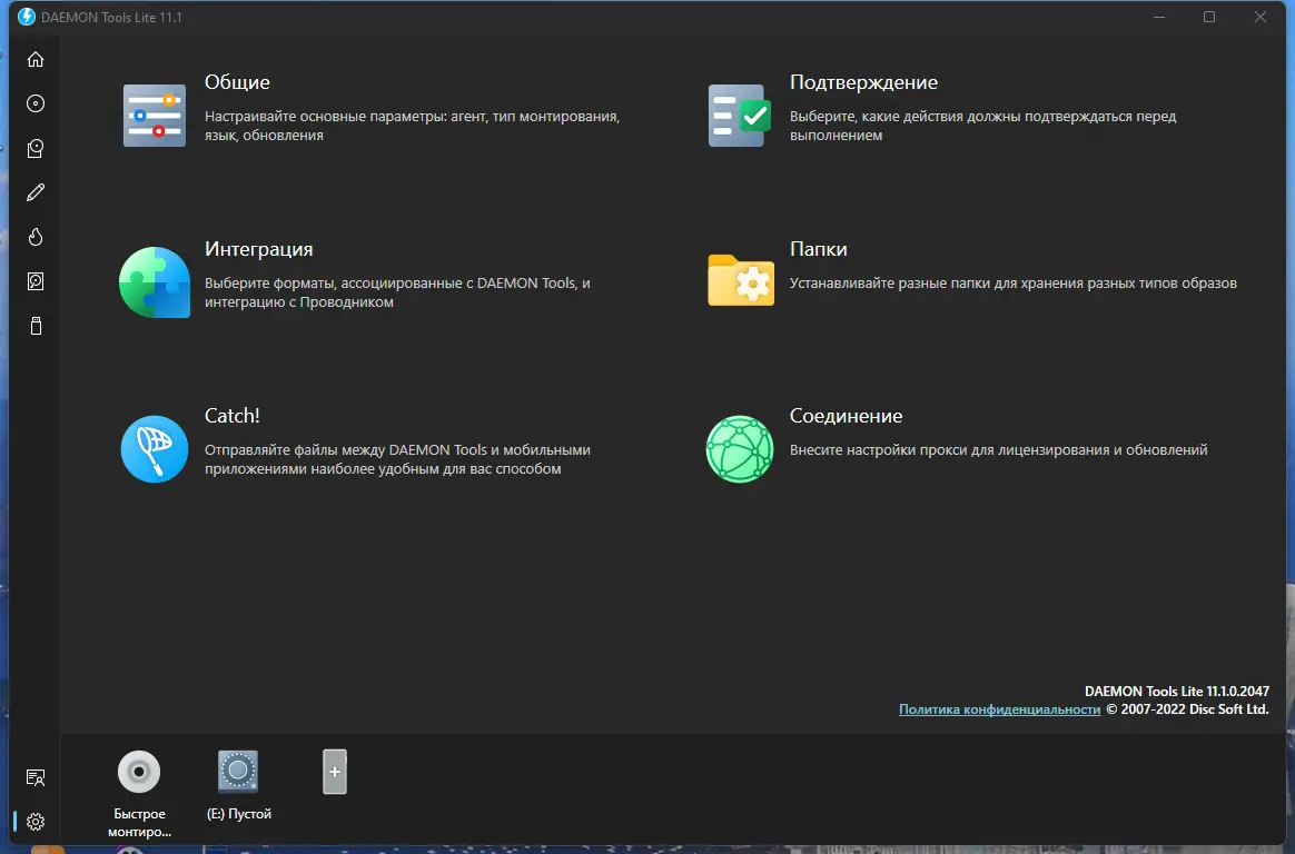 После установки DAEMON Tools Lite становится доступной через иконку в системном трее. Для монтирования образа достаточно щёлкнуть по иконке, выбрать нужный виртуальный привод и указать путь к файлу образа. Программа сразу распознаёт формат и монтирует его как обычный диск в проводнике Windows. Для создания образа с физического диска используется встроенная функция записи, которая сохраняет данные в форматах ISO, MDS или MDX. Также можно добавлять образы в локальный каталог программы для быстрого доступа в будущем.