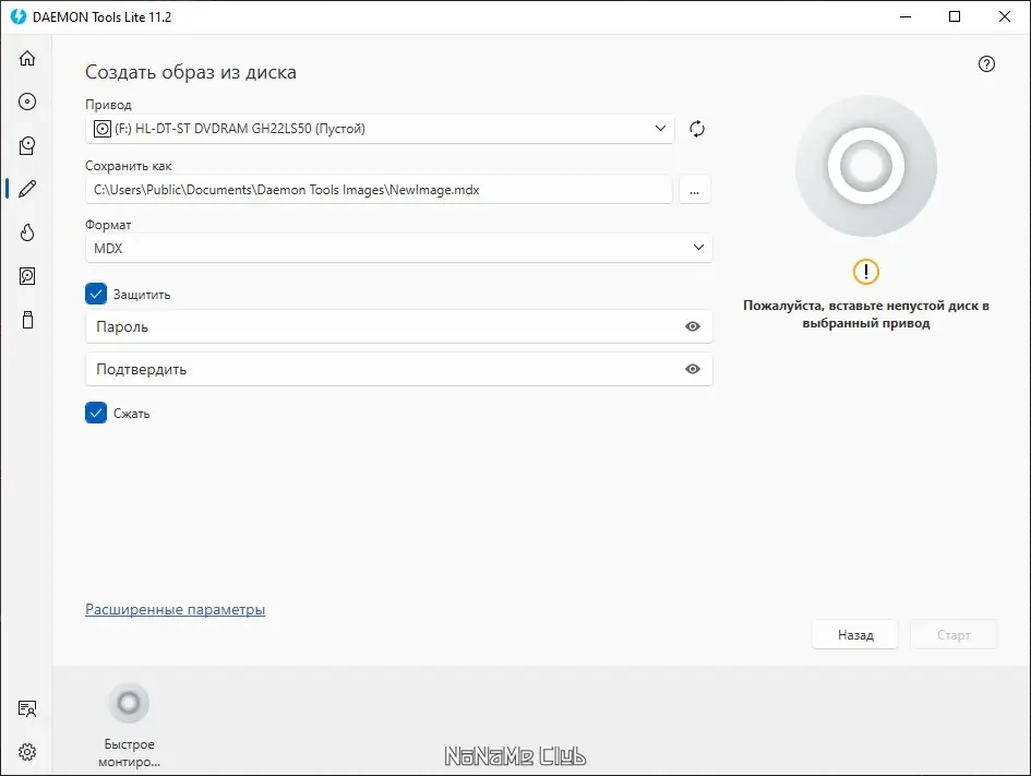- Возможность создавать образы с физических дисков