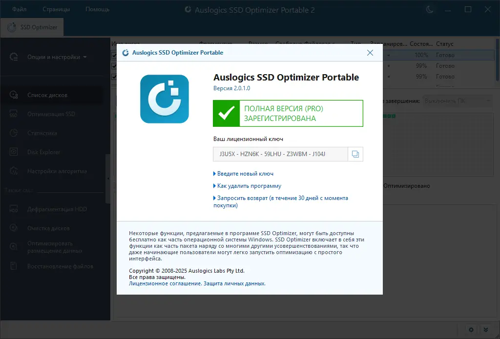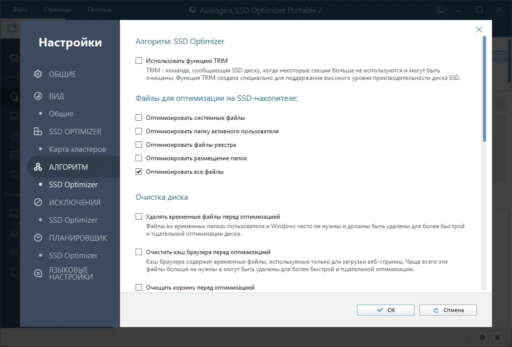 Описание Auslogics SSD Optimizer