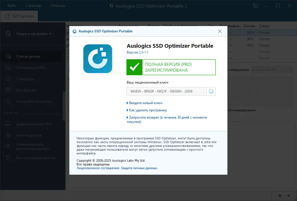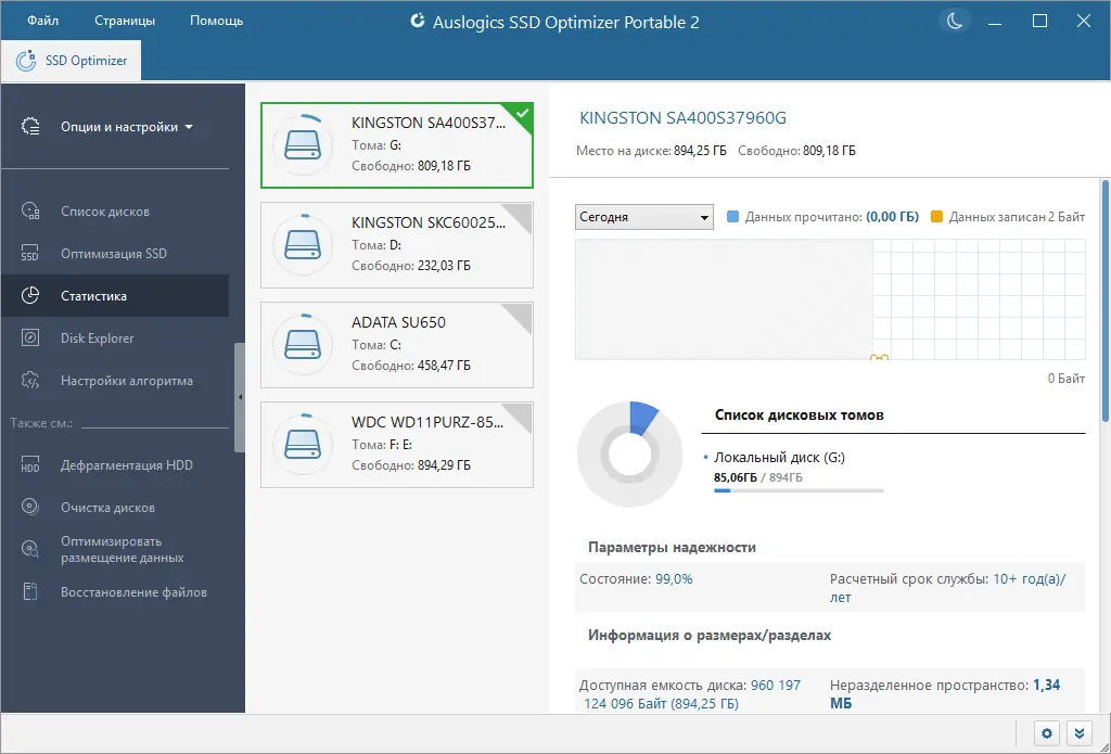 Auslogics SSD Optimizer — это специализированное приложение, разработанное для комплексной настройки и ускорения работы твердотельных накопителей. Программа помогает продлить срок службы SSD, оптимизируя процессы записи и чтения, а также обеспечивая эффективное использование дискового пространства. С её помощью пользователи могут поддерживать высокую производительность системы без вмешательства в аппаратную часть.