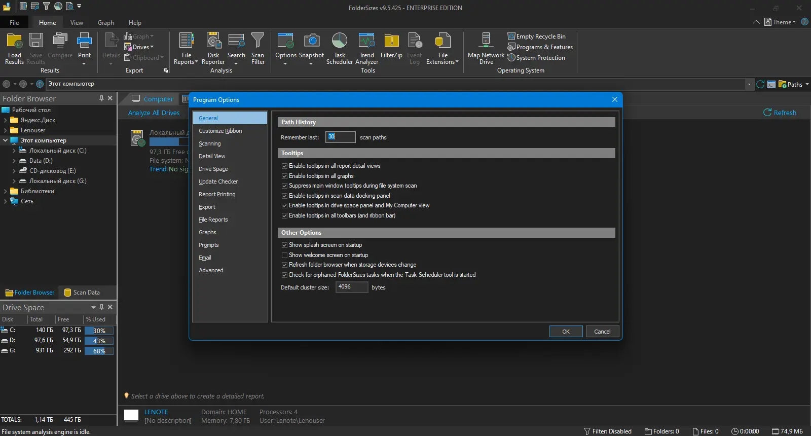 Как пользоваться FolderSizes