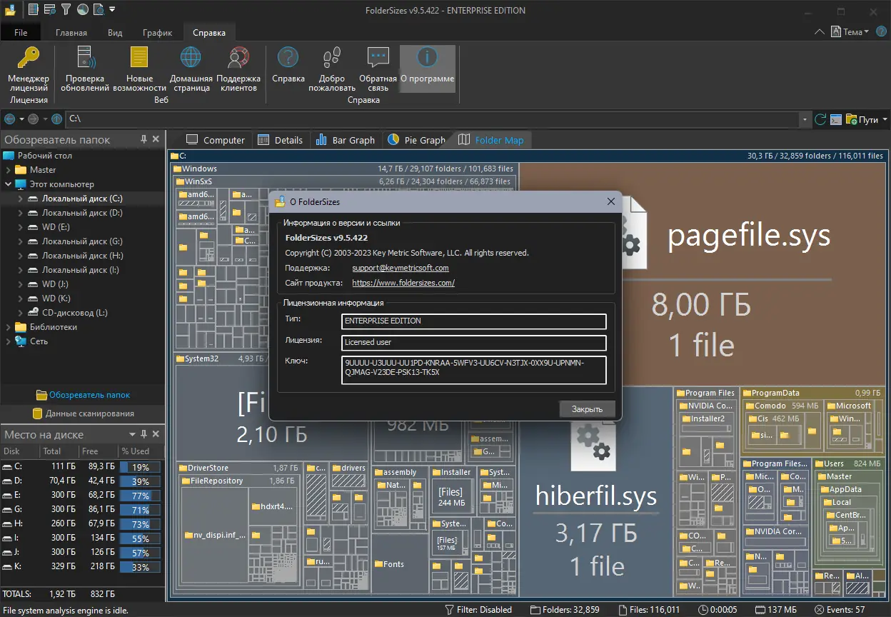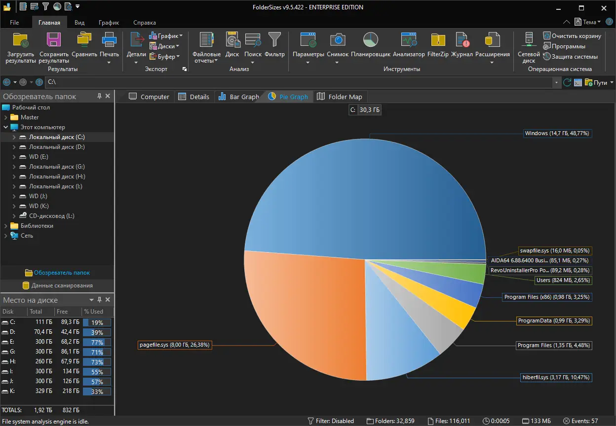 FolderSizes сочетает производительность, функциональность и удобный интерфейс для глубокого анализа дискового пространства.