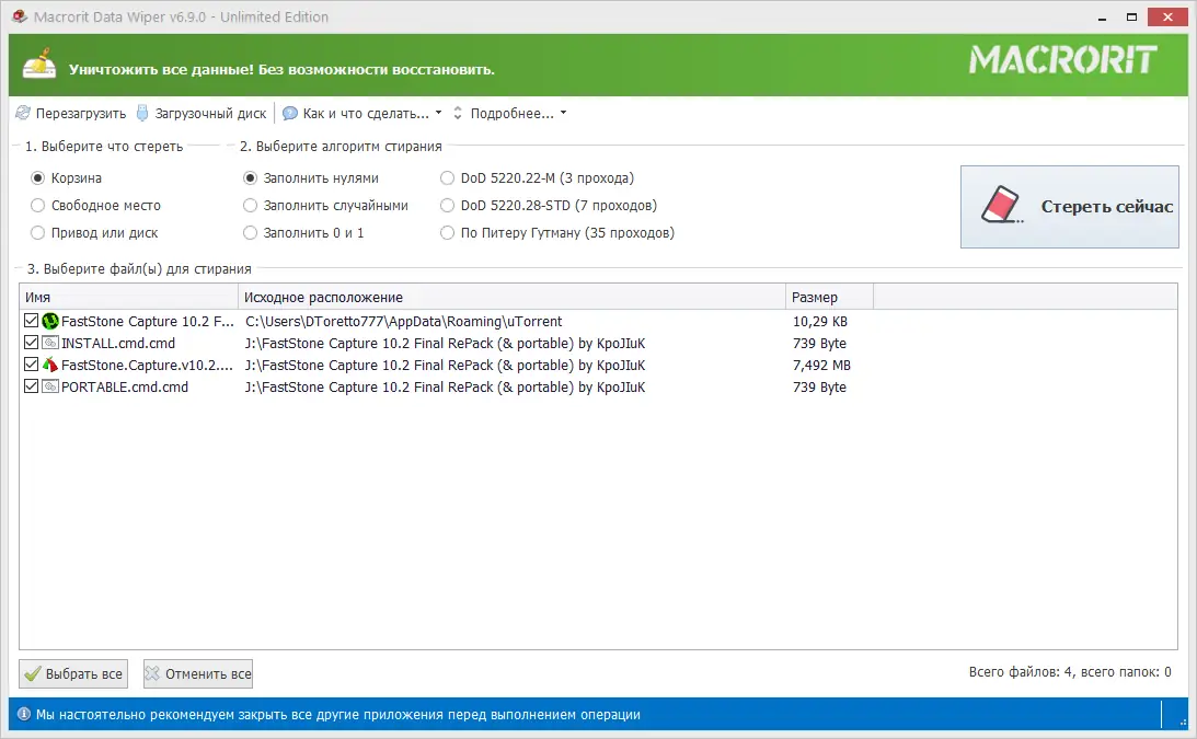 Как пользоваться Macrorit Data Wiper