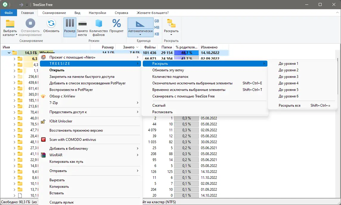 TreeSize Free не читает содержимое файлов при сканировании, что гарантирует безопасность и конфиденциальность пользовательских данных.