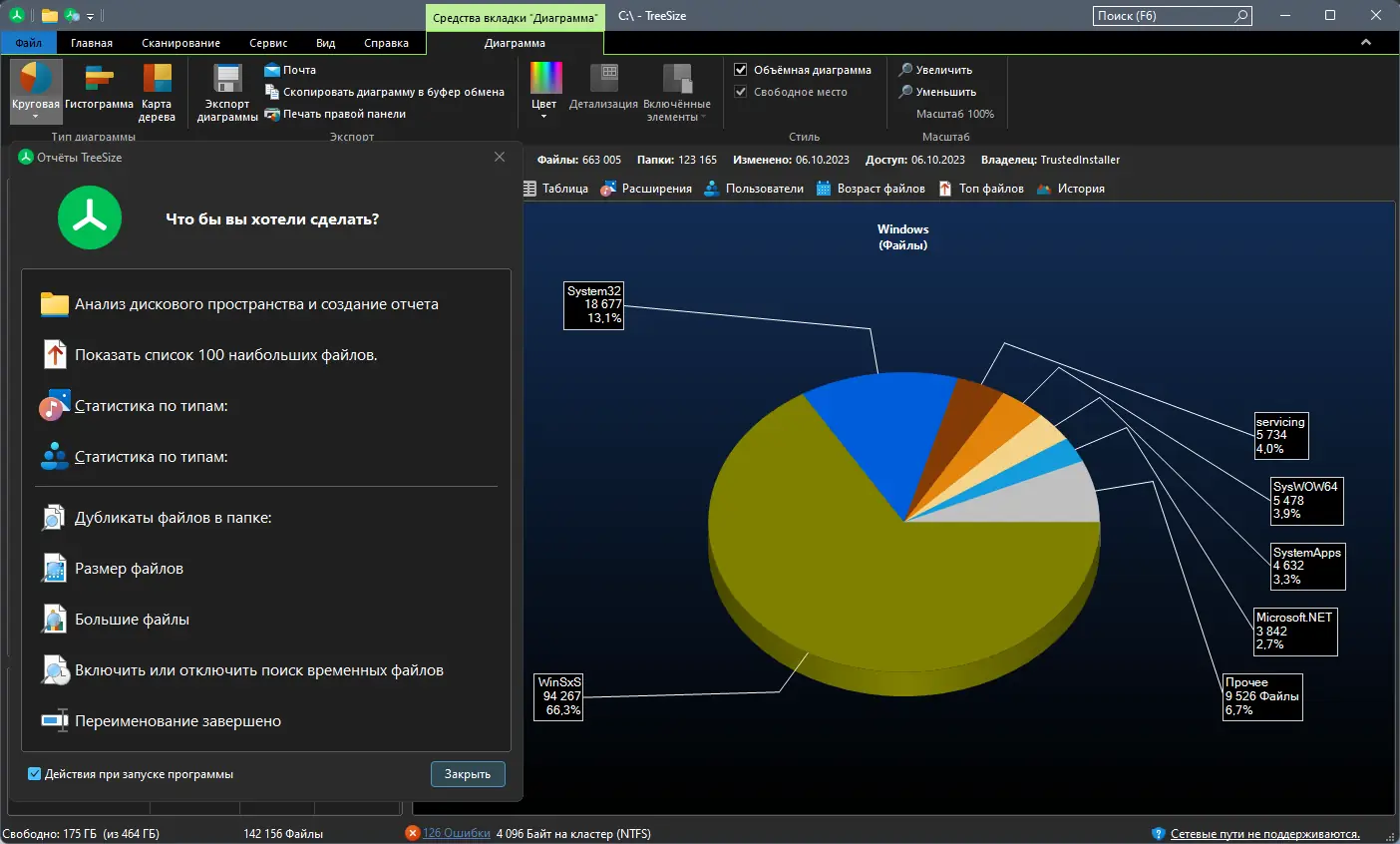 - Визуализация использования дискового пространства с помощью диаграмм и графиков