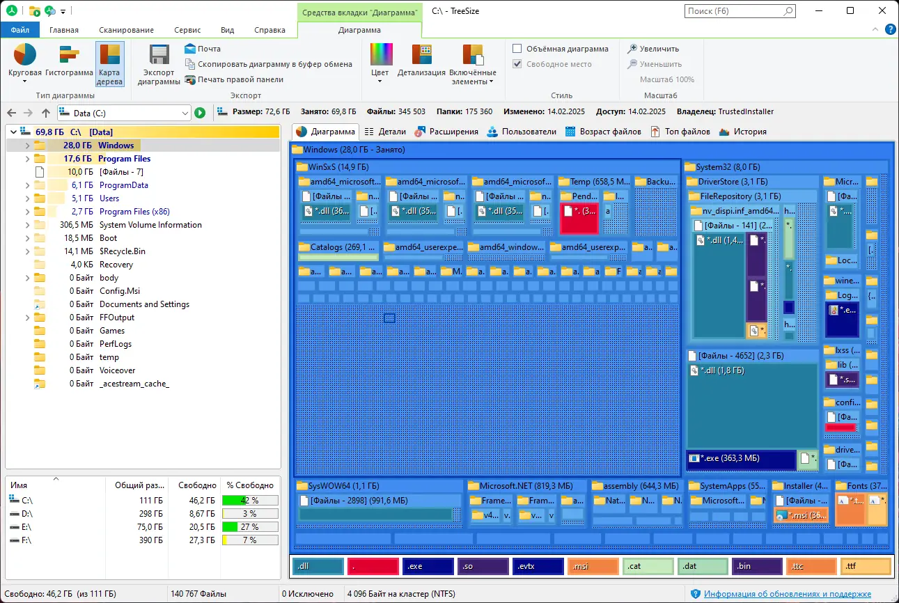 TreeSize сочетает мощные аналитические возможности с интуитивно понятным интерфейсом, что делает его незаменимым инструментом для системных администраторов и обычных пользователей.