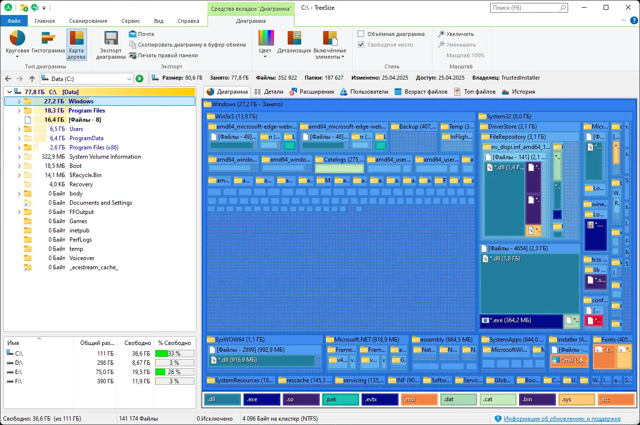 TreeSize сочетает высокую производительность, глубокую детализацию и удобный интерфейс, что делает её незаменимой для системных администраторов и продвинутых пользователей.