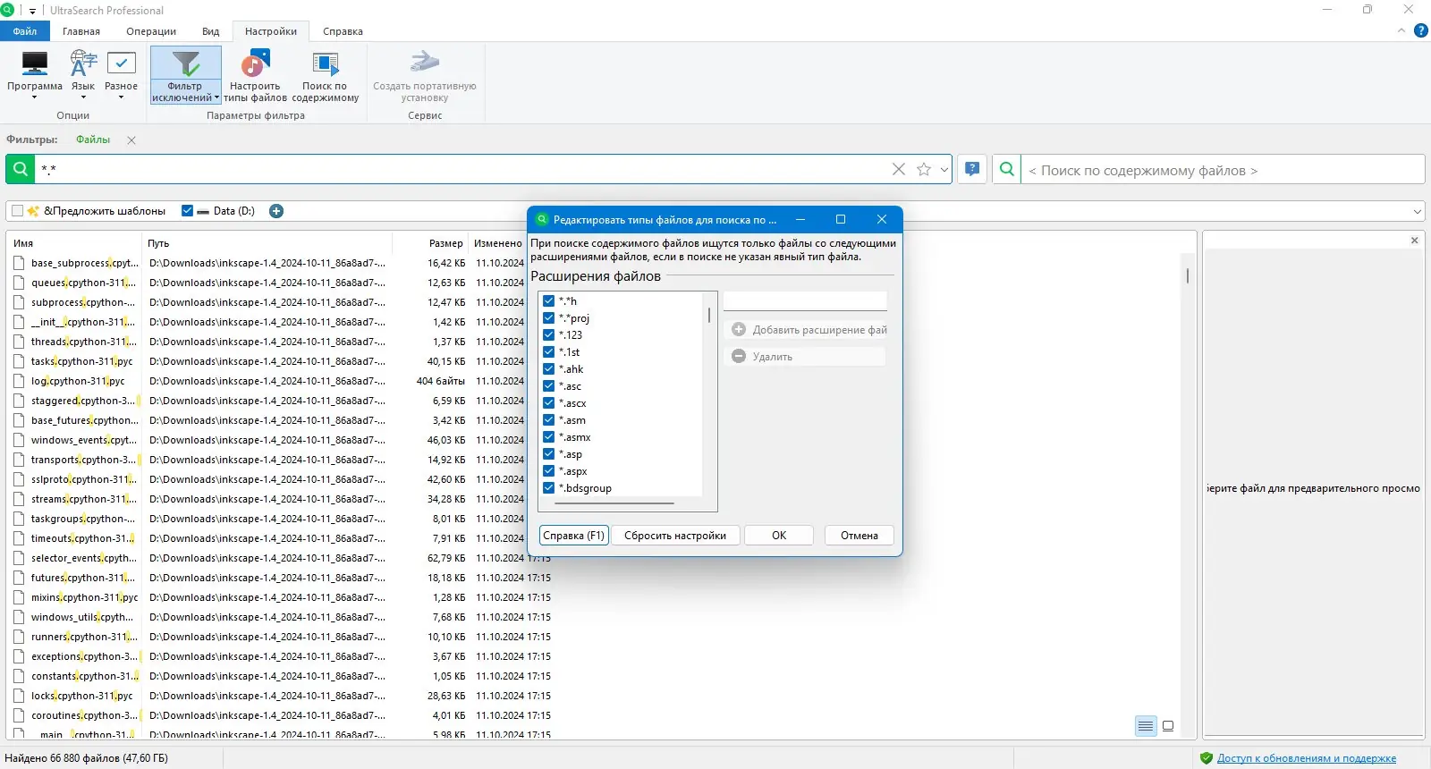 - Функция исключения определенных папок, типов файлов или отдельных элементов из результатов с помощью гибких фильтров.