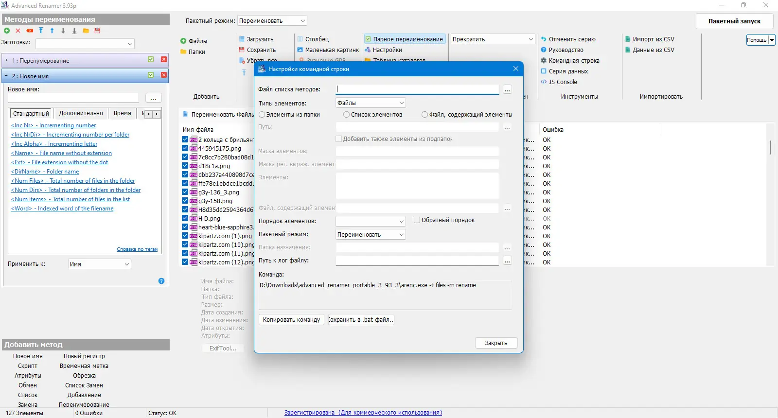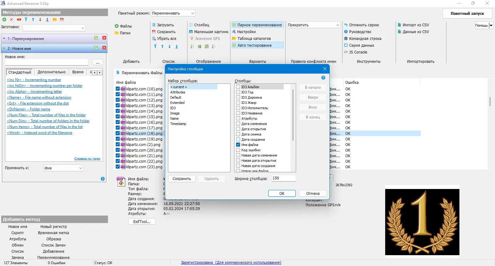 - Доступно более десяти методов переименования, включая замену, вставку, удаление и нумерацию
