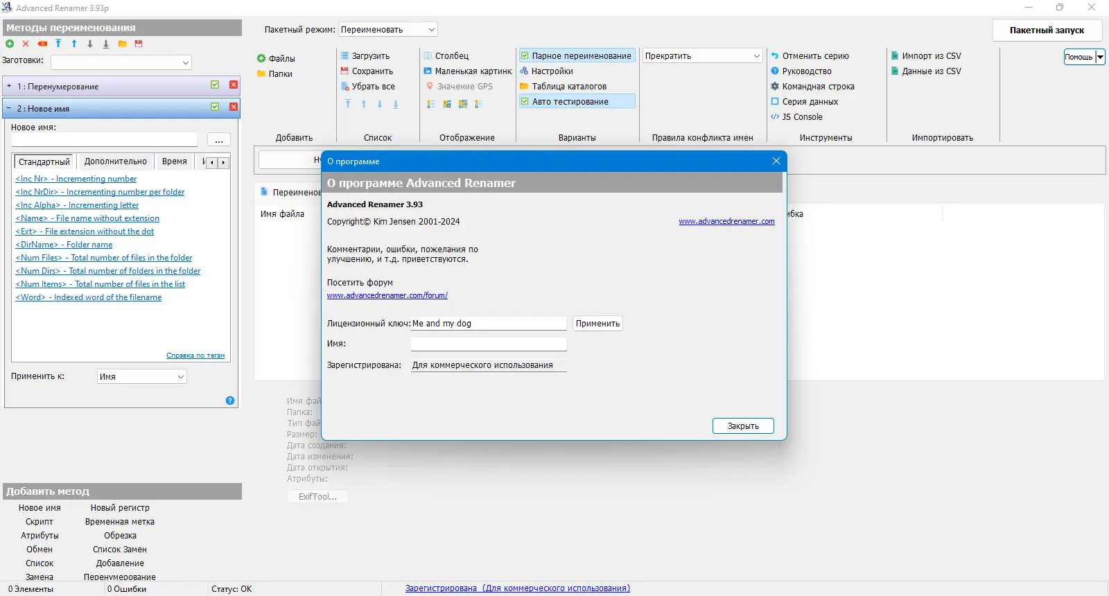 Advanced Renamer — мощная утилита для массового переименования файлов и папок в операционной системе Windows, сочетающая в себе гибкость, точность и высокую производительность. Программа поддерживает множество методов обработки имен, включая работу с метаданными мультимедийных файлов, EXIF-данными изображений и системными атрибутами. Благодаря интуитивному интерфейсу и предварительному просмотру изменений, пользователь может быстро и безопасно проводить переименование сотен и тысяч файлов.