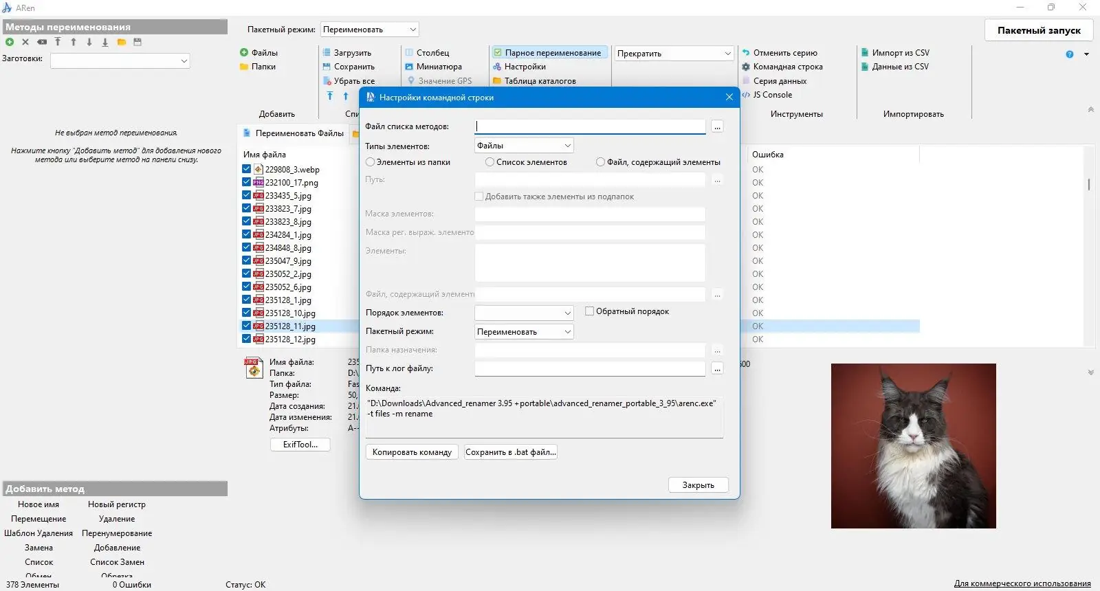 - Поддержка множества методов и комбинаций при переименовании файлов
