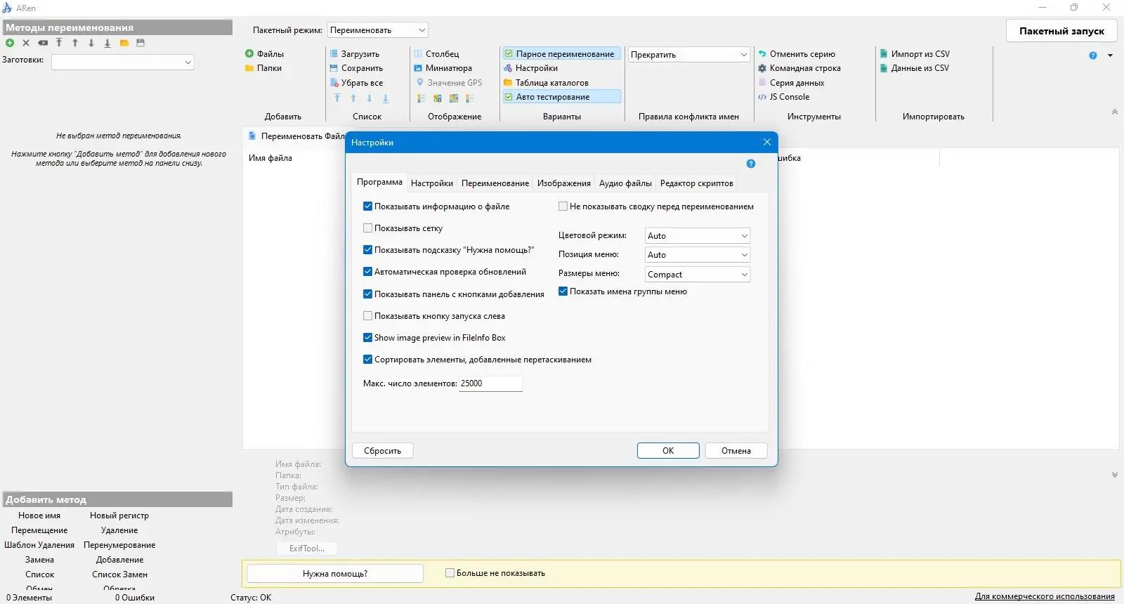Программа поддерживает одновременное применение нескольких методов переименования, что повышает гибкость обработки