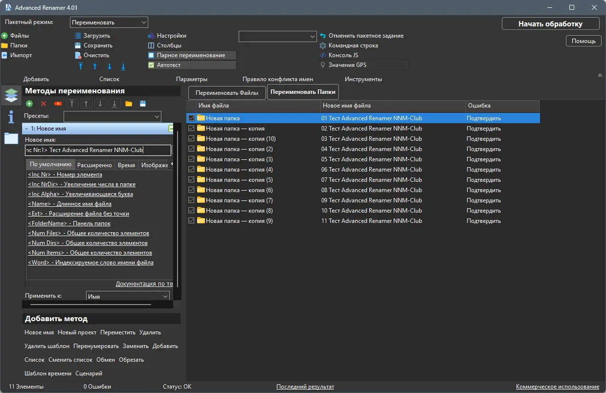 - Поддержка широкого спектра методов переименования файлов