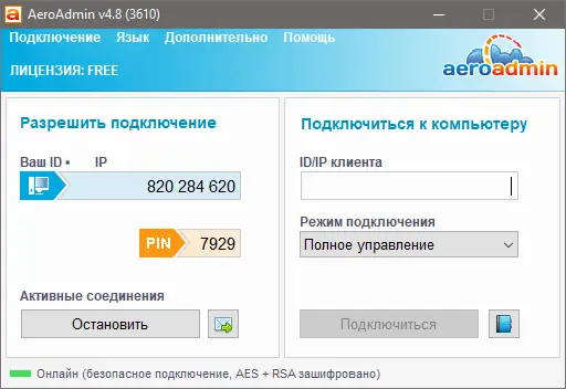 Программа AeroAdmin предназначена для быстрого и безопасного удалённого подключения к компьютерам, находящимся за NAT или в другой сети. Она не требует установки, регистрации и сложной настройки — достаточно запустить исполняемый файл размером около 2 МБ, и система готова к работе. Уникальный ID-номер, присваиваемый устройству, остаётся неизменным и позволяет установить соединение за считанные секунды. Подключение возможно как по ID, так и по прямому IP-адресу, что расширяет сценарии использования.