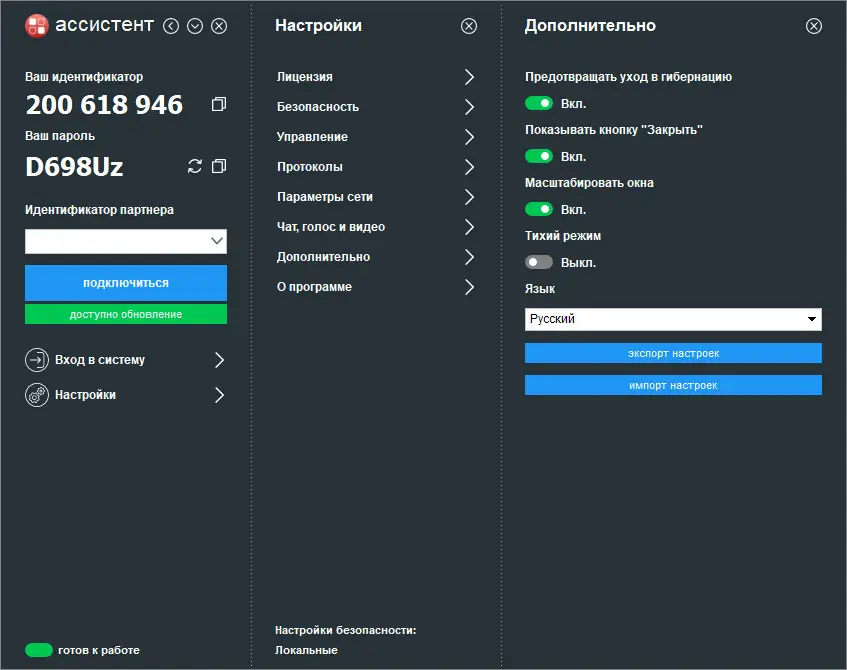 Программа доступна для установки на различных версиях Windows, включая 7, 8.1, 10 и 11, как в 32-, так и в 64-битных системах. В комплекте поставки входит установочный файл и портативная версия для быстрого подключения. Сертифицированное решение обеспечивает безопасный удаленный доступ, соответствует нормам российского законодательства и может использоваться в организациях, предъявляющих высокие требования к защите данных. Чтобы бесплатно скачать АССИСТЕНТ, необходимо перейти на официальную страницу. Продукт не требует подключения к сторонним облачным сервисам, таким как гугл, и работает независимо от внешних платформ. Как отключить а функции или настроить доступ к определённым модулям — решает администратор через встроенные инструменты. Удалённый доступ реализован без уязвимостей, а возможность а удали данных контролируется политиками безопасности. Программа подходит для различных сфер, включая медицину — например, для технической поддержки оборудования стоматолога. Полный доступ к системе предоставляется только после прохождения аутентификации.