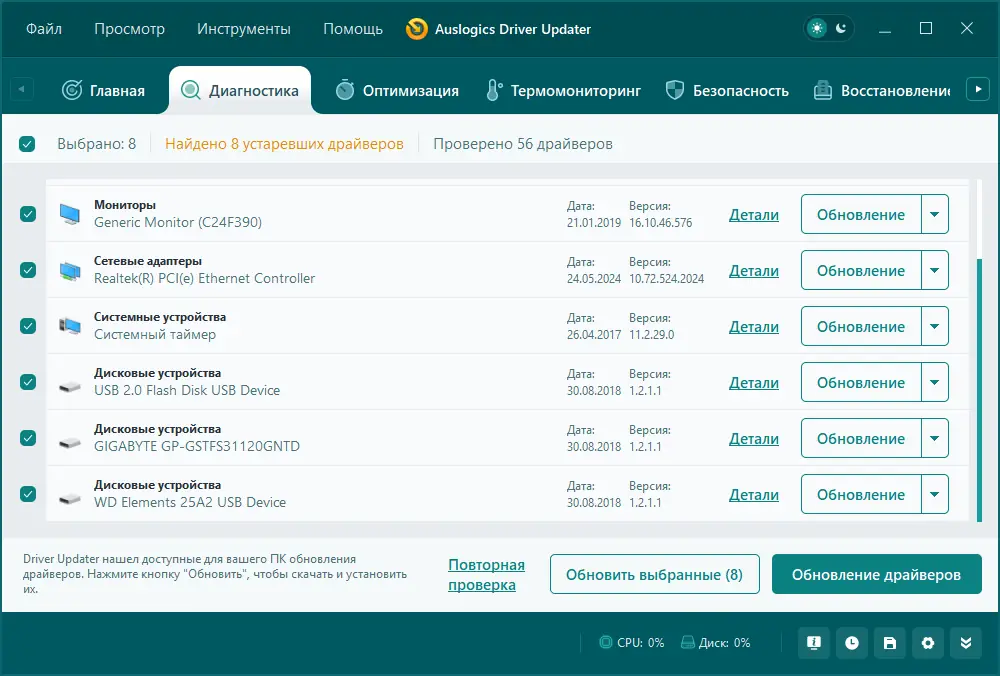 Описание Auslogics Driver Updater