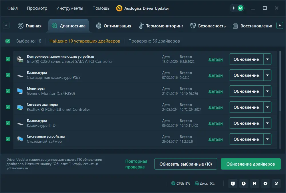 Описание Auslogics Driver Updater