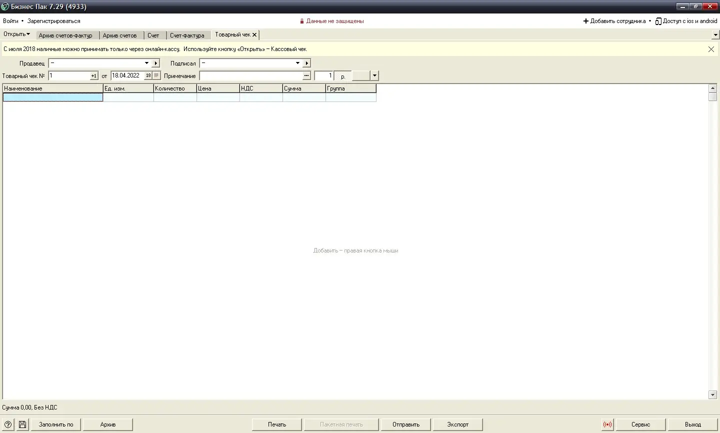 Бизнес Пак 7 — это бесплатное приложение для автоматизации документооборота в малом и среднем бизнесе, позволяющее создавать, хранить и печатать первичные бухгалтерские документы. Программа подходит как для начинающих предпринимателей, так и для действующих компаний, которым необходим простой и надежный инструмент учета. Она включает все основные формы, используемые в повседневной работе: от счетов и накладных до налоговой отчетности и кассовой книги.