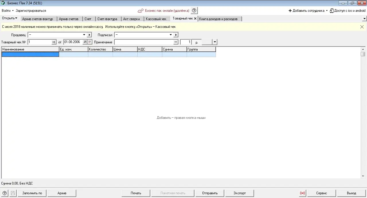 - Поддержка формирования универсального передаточного документа (УПД) и счетов-фактур по новой форме
