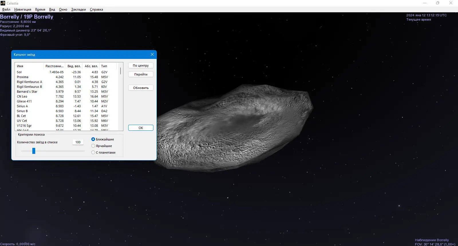 - Пользователь может включать или отключать коррекцию положения звёзд с учётом конечной скорости света, что добавляет научной точности.