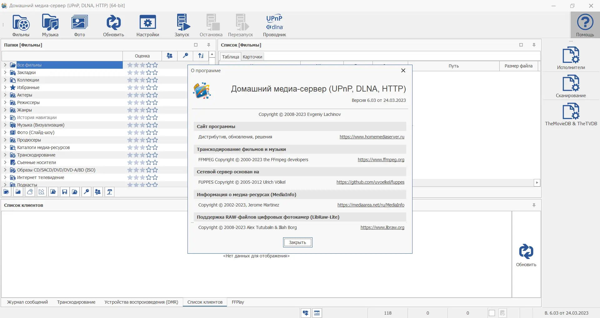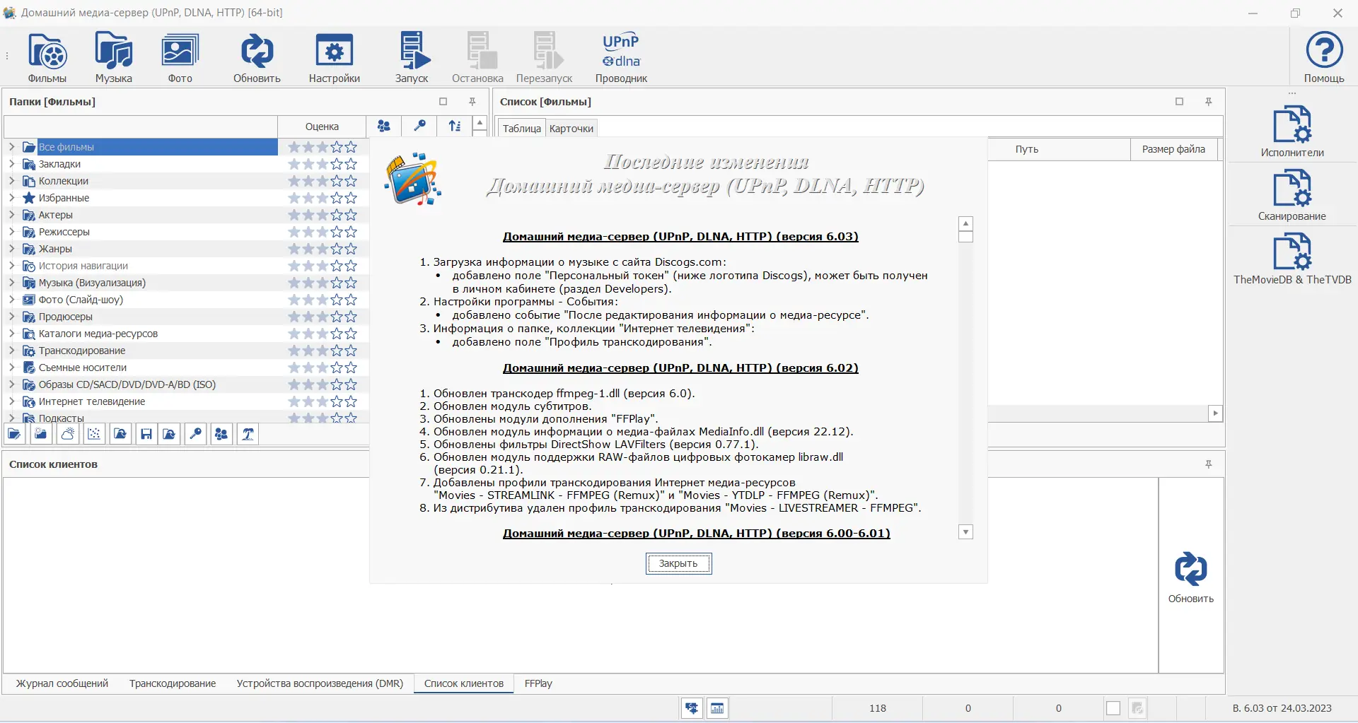 Домашний медиа-сервер — универсальное программное обеспечение для организации медиа-контента в домашней сети. Программа предоставляет доступ к аудио, видео и изображениям с компьютера на различные устройства, включая телевизоры, игровые приставки, смартфоны и медиаплееры. Поддержка протоколов UPnP, DLNA и HTTP обеспечивает совместимость с широким спектром оборудования от ведущих производителей.