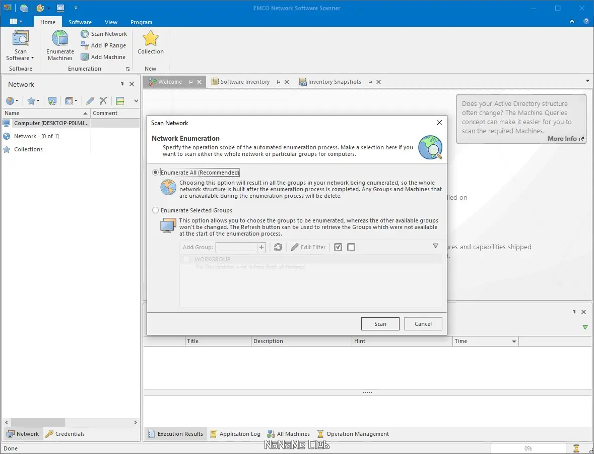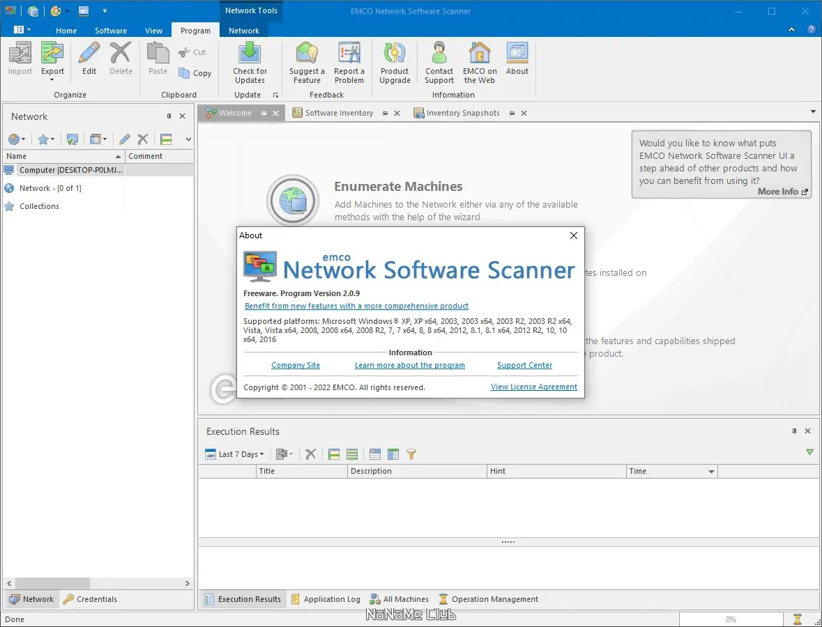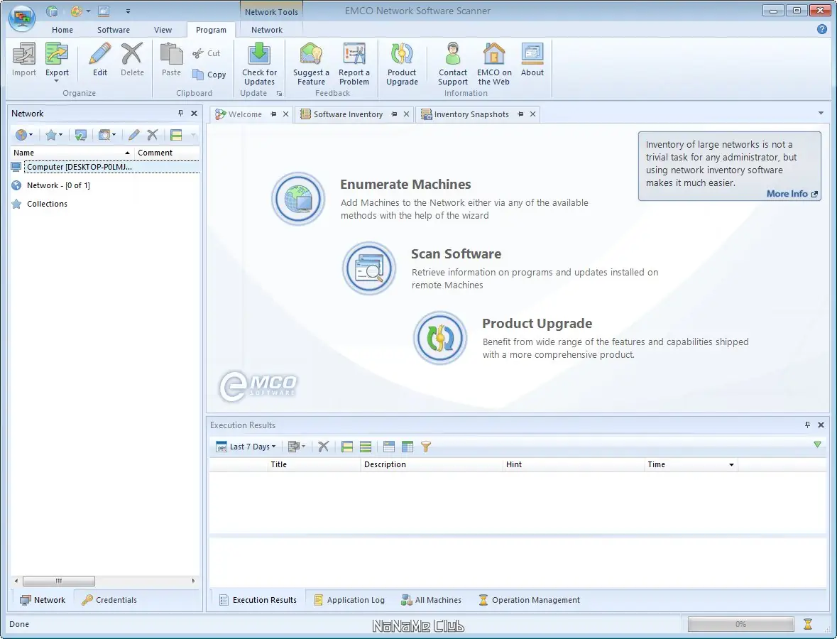 EMCO Network Software Scanner — это инструмент для автоматизированного сбора данных о программном обеспечении, установленном на компьютерах в локальных и глобальных сетях. Программа работает без установки клиентского компонента и позволяет получать актуальную информацию о приложениях и обновлениях удалённо, не прерывая работу пользователей. Поддерживает масштабирование в крупных IT-инфраструктурах с тысячами узлов.