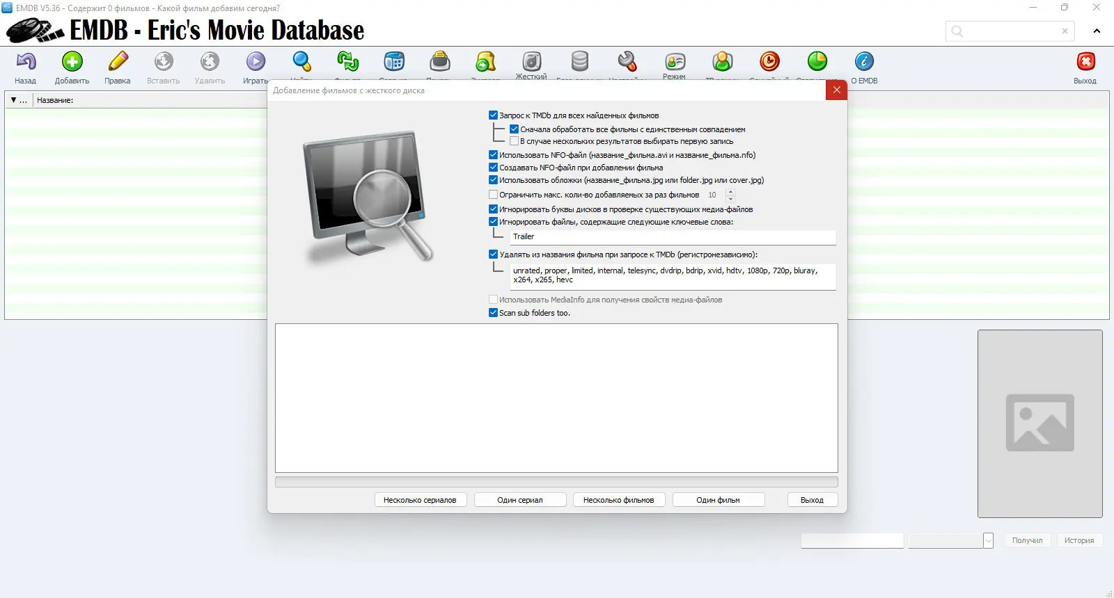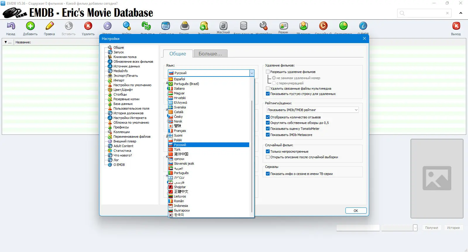 Eric’s Movie DataBase — это удобное приложение для систематизации домашней коллекции фильмов и сериалов, автоматически наполняющее базу данных информацией с ведущих киноплатформ. Программа поддерживает импорт постеров, трейлеров, сведений об актёрах и технических характеристиках видео. Она подходит как для любителей кино, так и для владельцев медиатек, стремящихся к порядку и визуальной привлекательности своей коллекции.