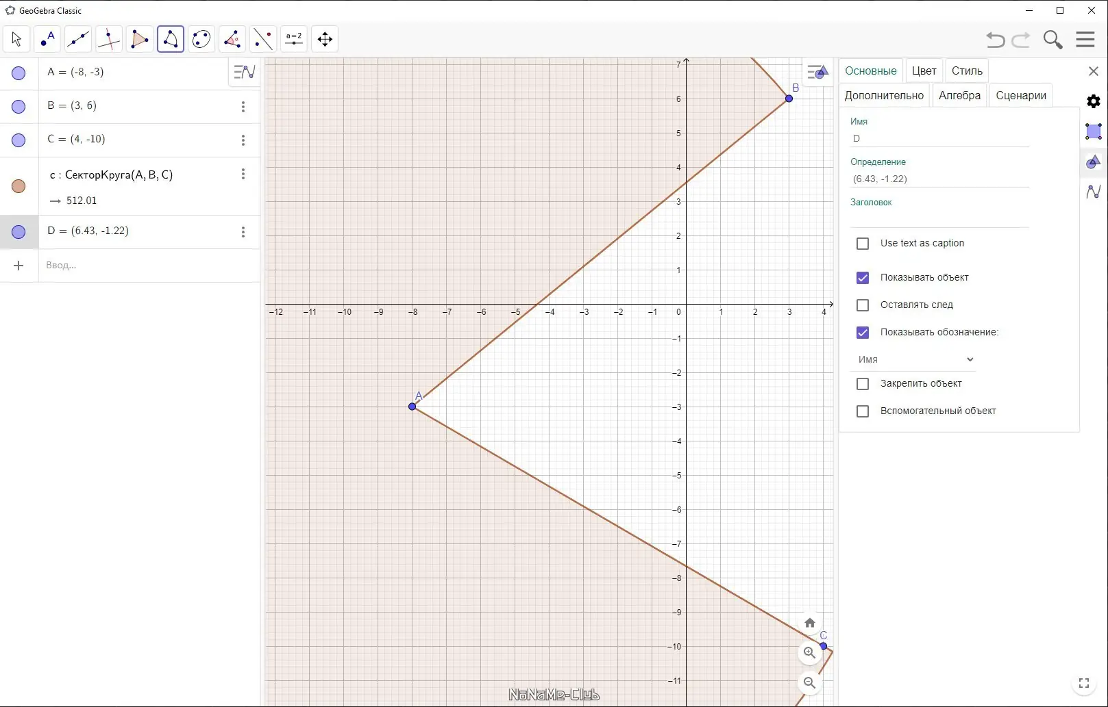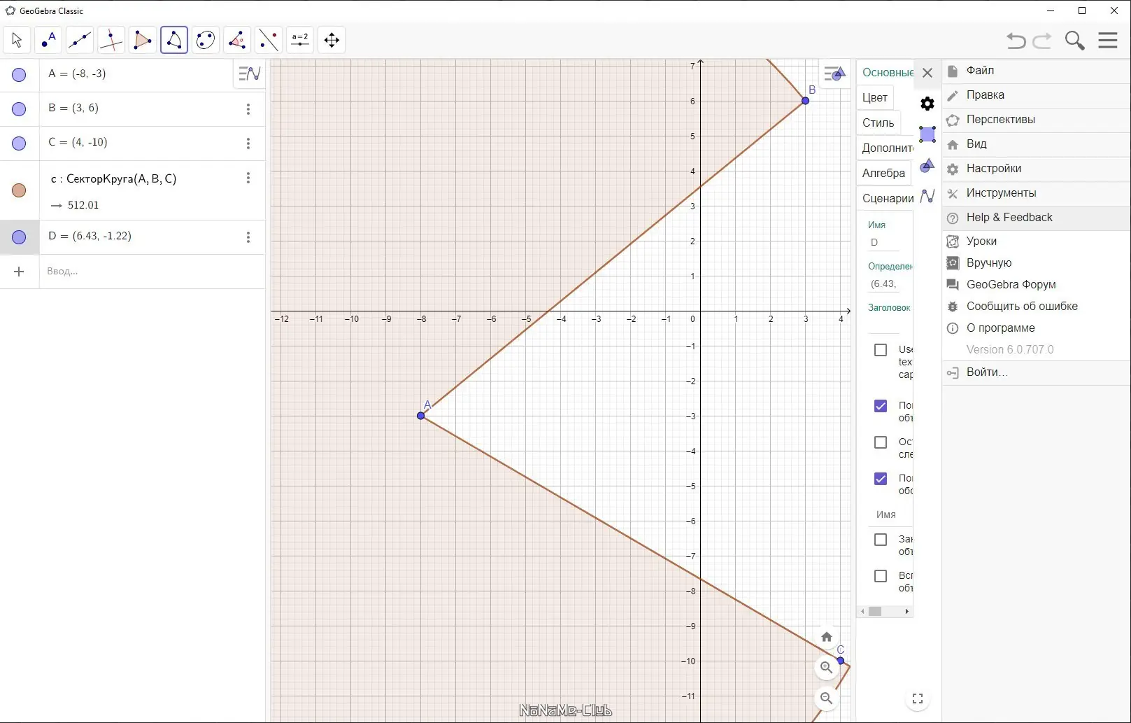 GeoGebra объединяет различные разделы математики, позволяя в интерактивной форме изучать взаимосвязи между алгебраическими выражениями и их геометрическими представлениями. Пользователи могут строить графики функций, исследовать поведение кривых, заданных параметрически, а также работать с коническими сечениями, включая эллипсы, параболы и гиперболы. Интерфейс поддерживает построение окружностей различными способами — по центру и радиусу, по трём точкам или по центру и точке на окружности.