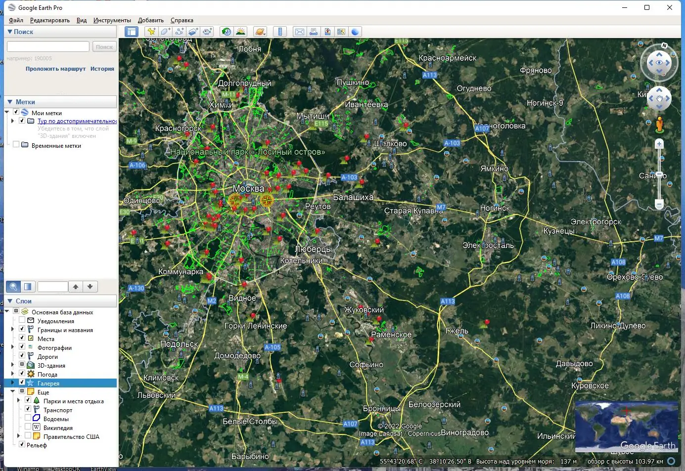 Программа Google Earth предлагает уникальную возможность взглянуть на Землю с высоты, не выходя из дома. Она использует технологию OpenGL для отображения трёхмерной модели планеты, включая рельеф местности и высоту над уровнем моря. Пользователи могут свободно перемещаться по любым точкам мира, увеличивать участки с высоким разрешением и изучать детализированные снимки крупных городов, включая Москву и столицы других стран. Данные подгружаются автоматически, а ранее загруженные фрагменты сохраняются локально, что снижает потребление интернет-трафика при повторных сессиях.