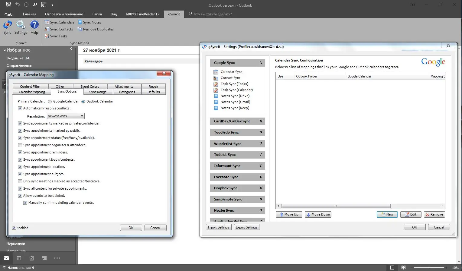 gSyncit — это инструмент для синхронизации данных между Microsoft Outlook и различными облачными сервисами, обеспечивающий бесперебойный обмен информацией между компьютером и мобильными устройствами. Программа позволяет синхронизировать календари, контакты, задачи и заметки, устраняя разрыв между настольной и мобильной экосистемами. Благодаря поддержке множества сервисов, включая Google, iCloud, Dropbox и других, пользователь получает полный контроль над своими данными.
