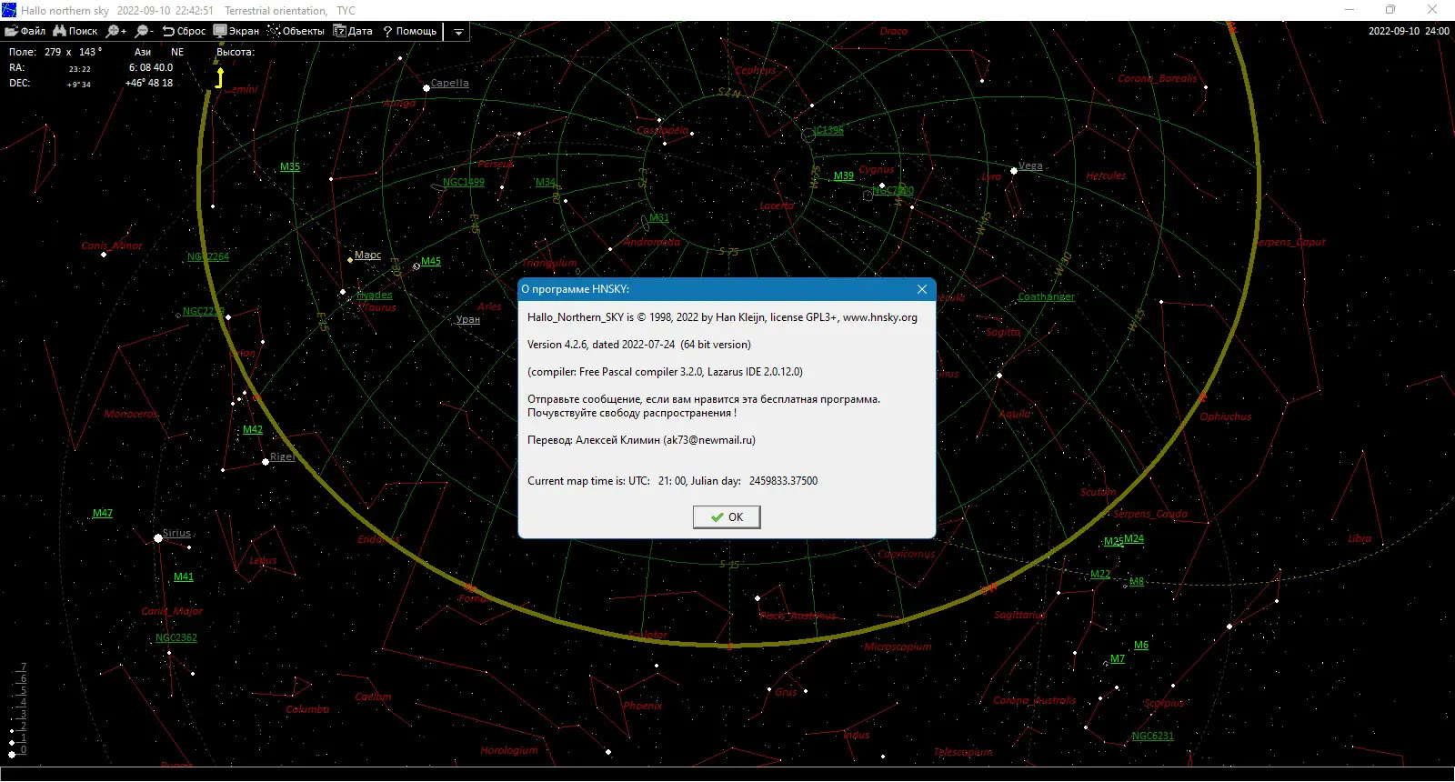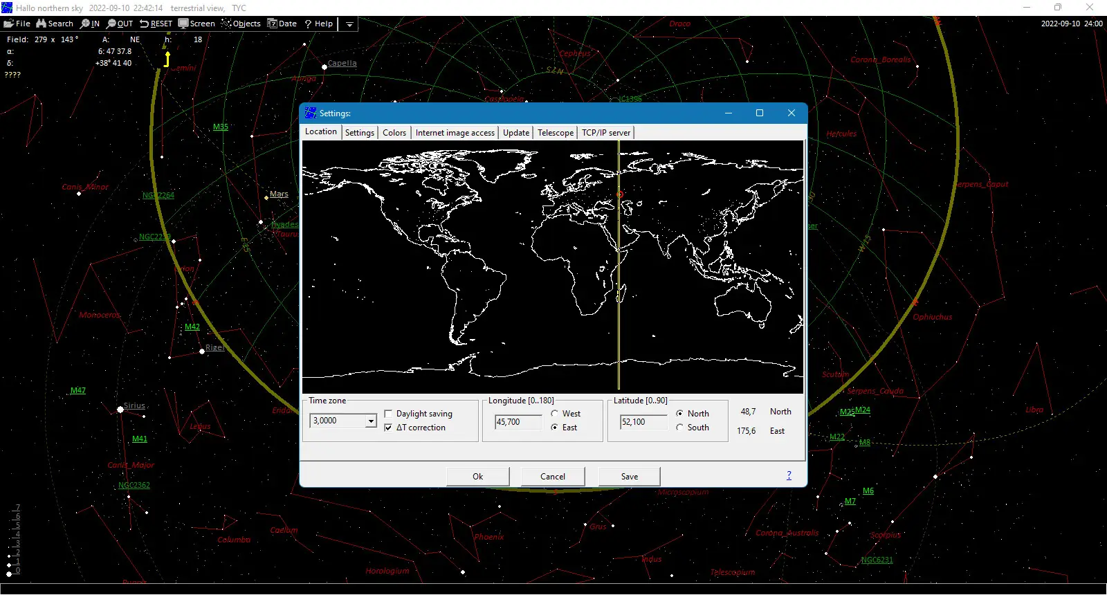 - Возможность скачивать недостающие изображения участков неба прямо из интернета