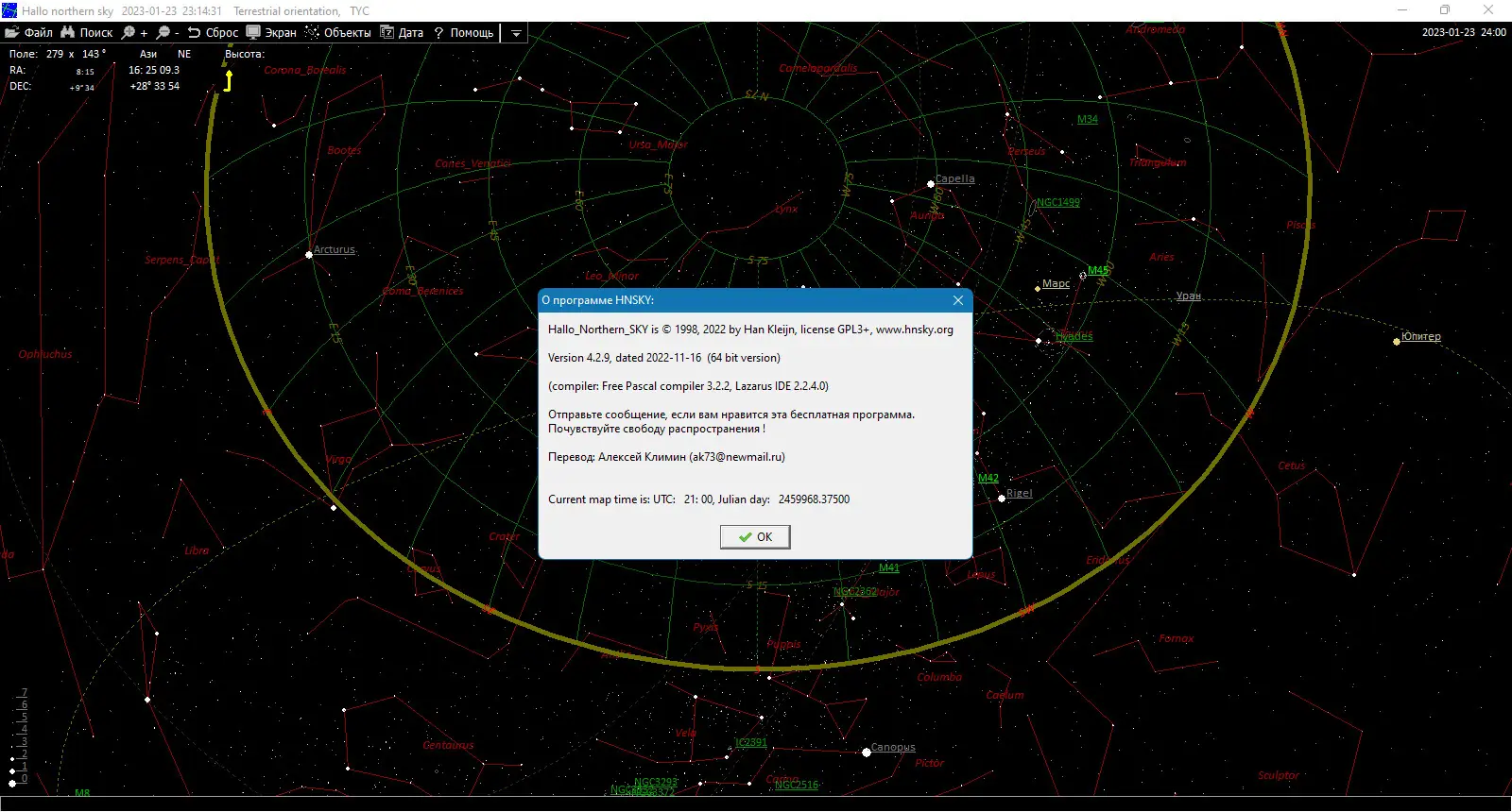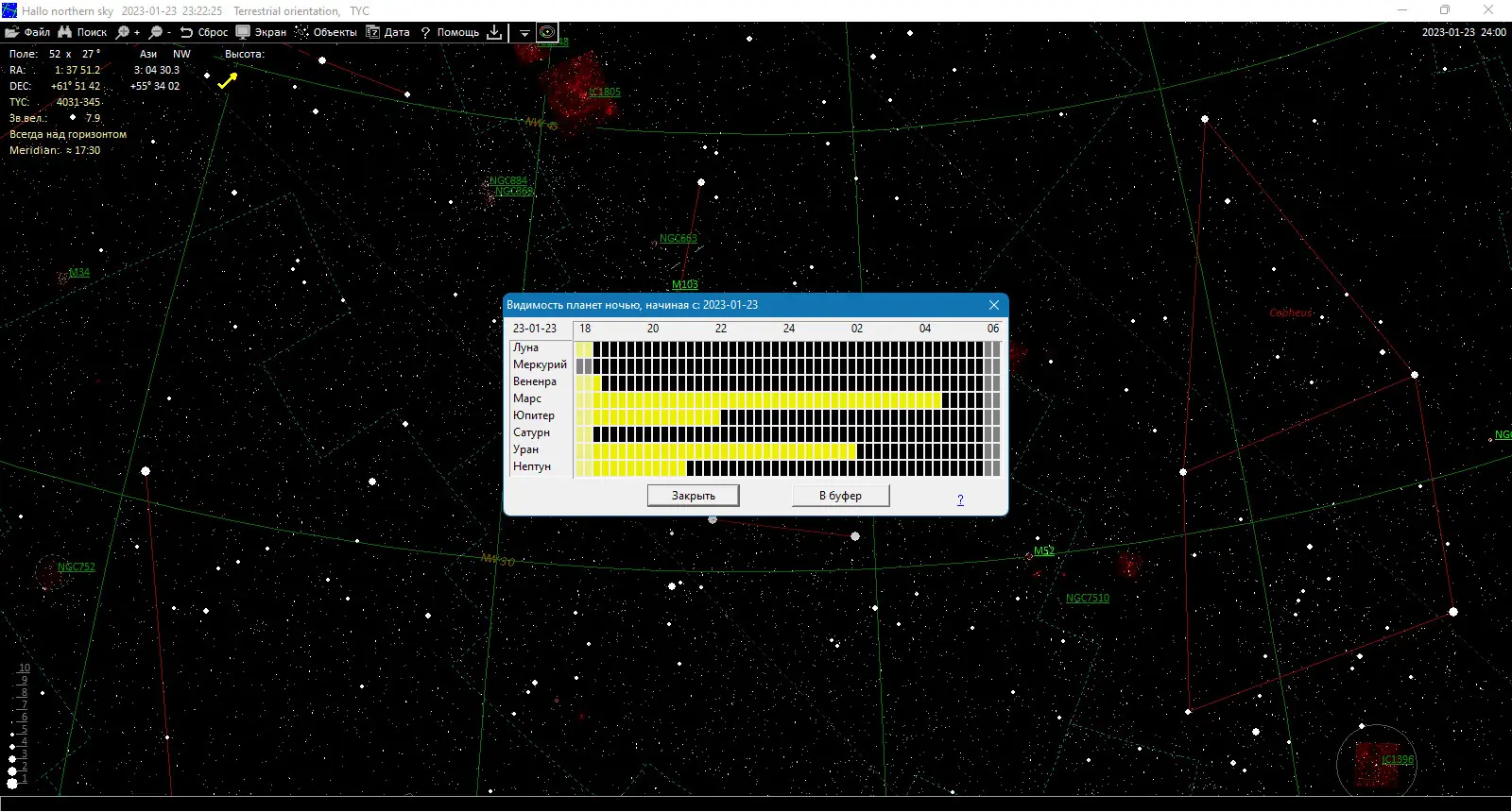Программа Hallo northern sky — это мощный планетарий с детализированной картой звёздного неба, обширной базой астрономических объектов и поддержкой онлайн-каталогов, предназначенный как для любителей, так и для серьёзных энтузиастов астрономии.