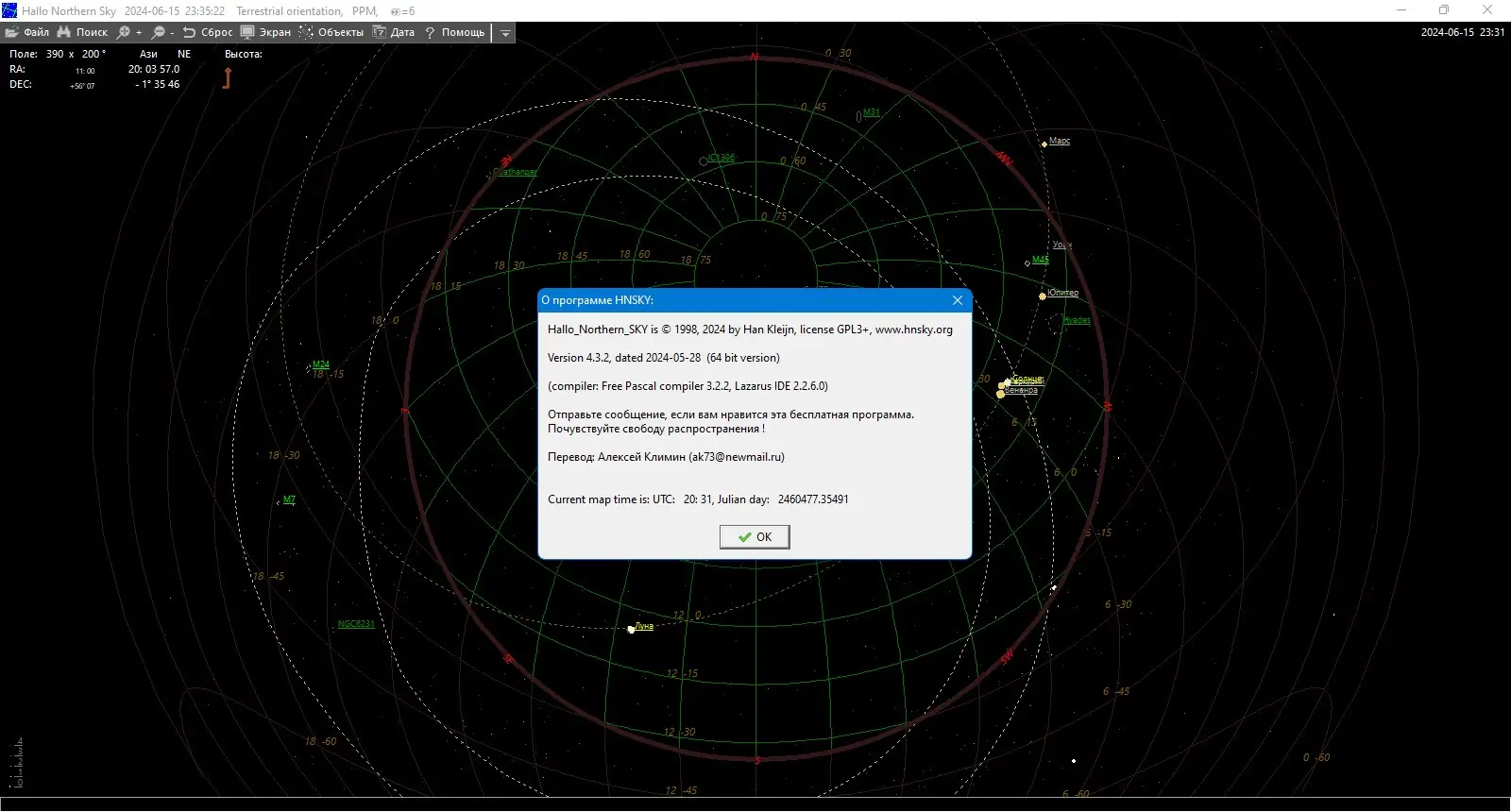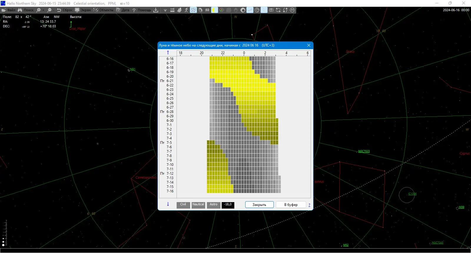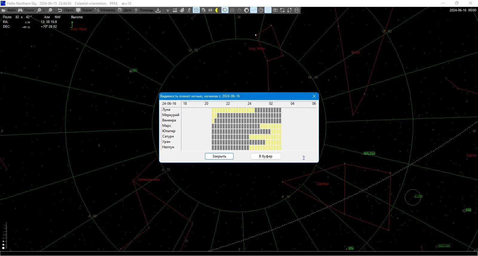 Hallo Northern Sky — это мощное приложение для изучения звёздного неба, сочетающее в себе функции цифрового планетария, базы данных астрономических объектов и инструмента визуализации космоса. Программа поддерживает детализированные карты звёзд до 16-й звёздной величины и предоставляет доступ к обширным каталогам, включая снимки с реальных телескопов. Подходит как для начинающих любителей астрономии, так и для опытных наблюдателей, интересующихся небесной механикой, координатами объектов и управлением оборудования.