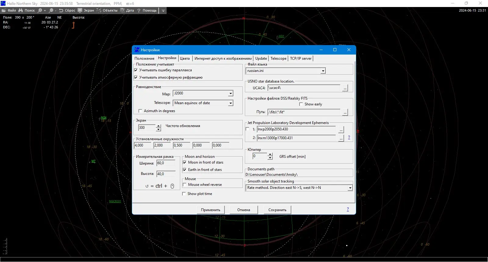 - Интеграция с каталогами USNO UCAC4 и GSC 1.2 для повышения детализации