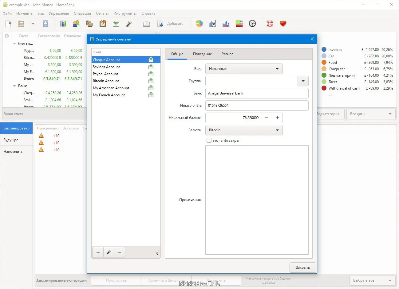 HomeBank — это удобное приложение для управления личными финансами, позволяющее эффективно контролировать доходы и расходы, вести учёт по различным типам счетов и визуализировать данные с помощью диаграмм и графиков. Программа подходит для тех, кто стремится к финансовому порядку и хочет понимать структуру своих трат. С её помощью можно легко анализировать бюджет за месяц или год, выявлять основные статьи расходов и планировать финансовые цели.