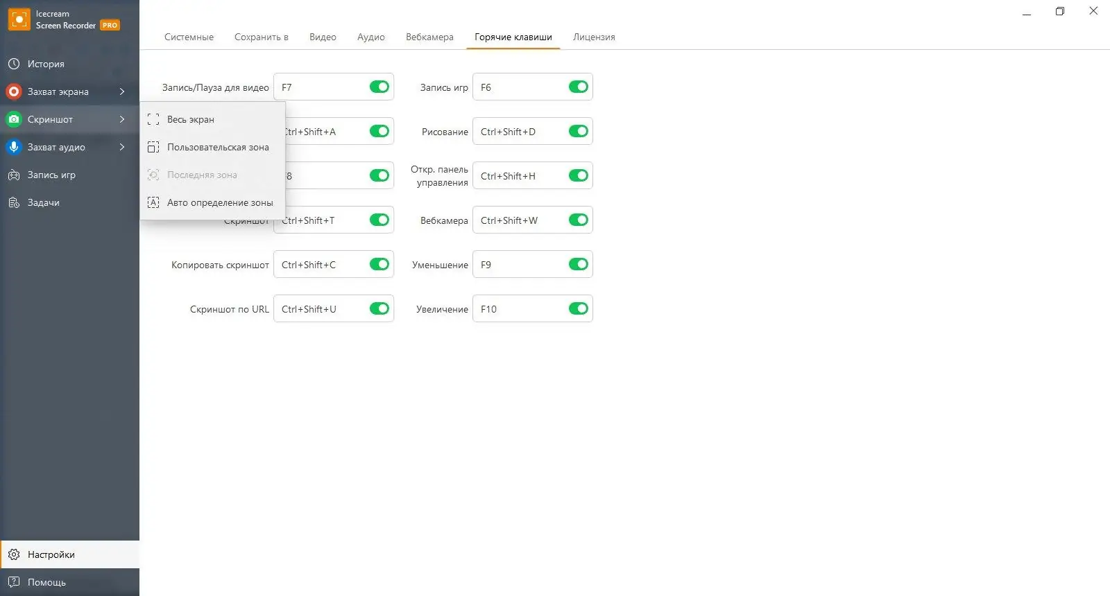 Icecream Screen Recorder — это удобное приложение для захвата экрана, позволяющее записывать видео любого формата, делать скриншоты и сохранять контент с вебкамерой. Программа поддерживает запись системного звука, микрофона и одновременный вывод изображения с камеры. Подходит для создания обучающих роликов, демонстрации работы приложений и сохранения потокового контента.