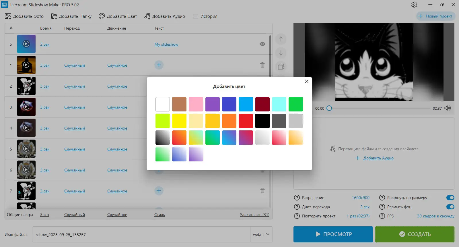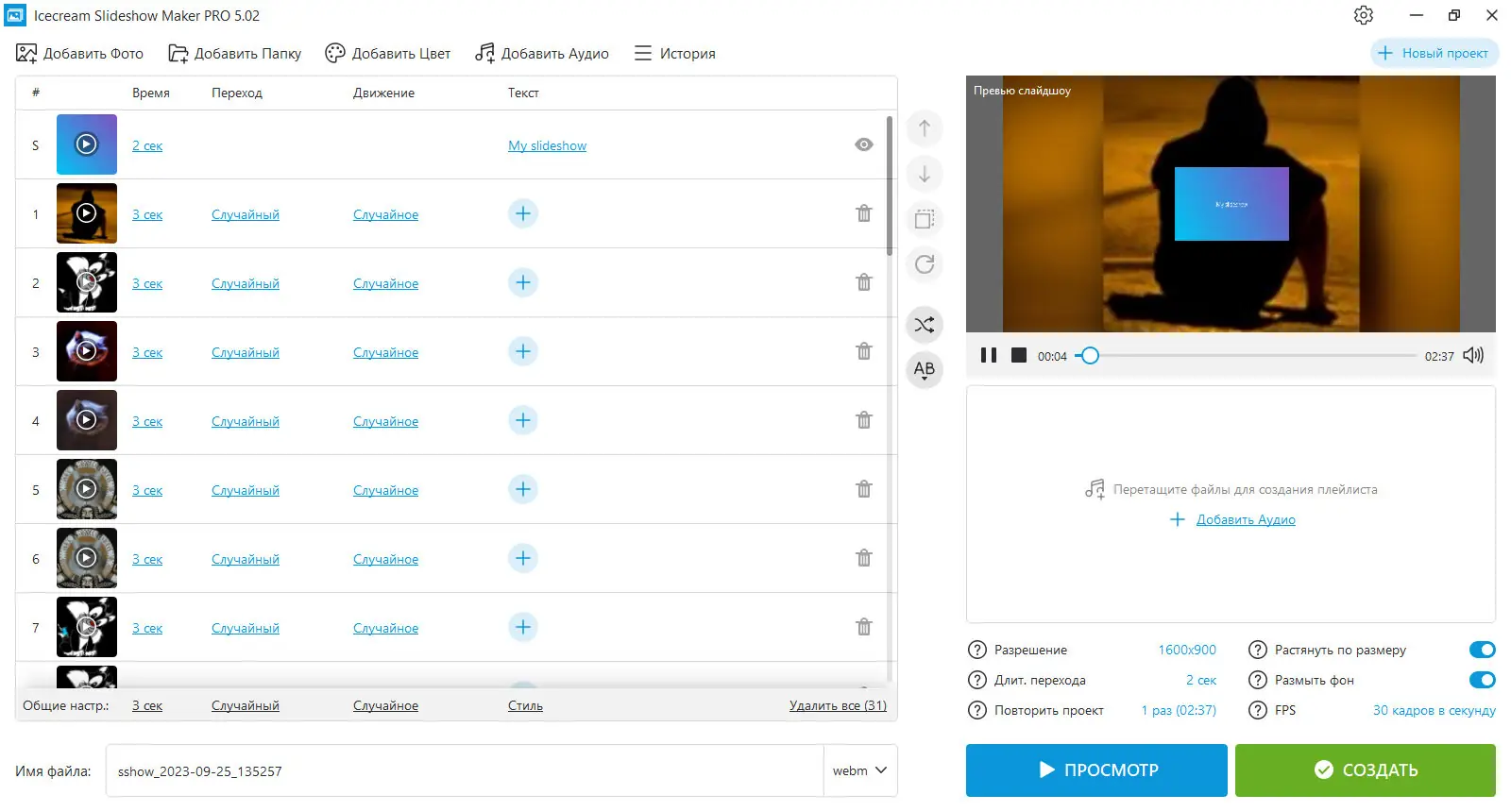 Создание слайдшоу становится простым и приятным процессом благодаря продуманной логике интерфейса и отсутствию сложных настроек.