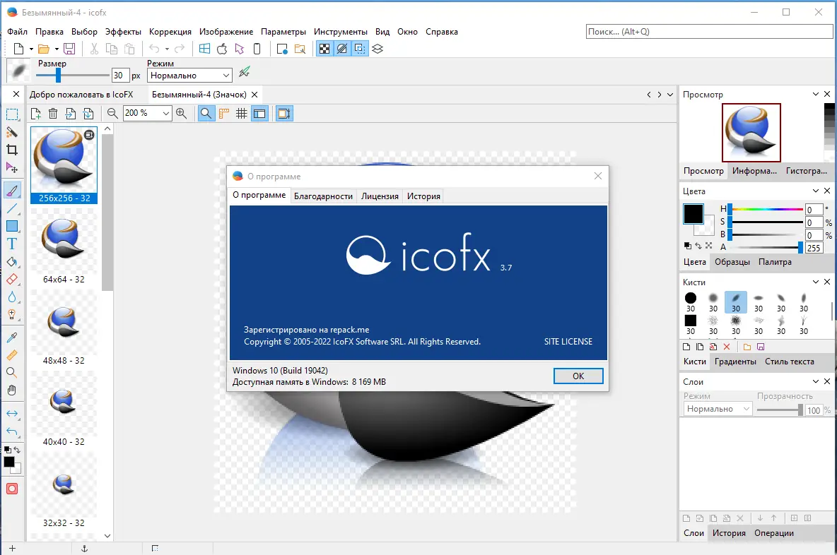 - Поддержка создания и редактирования иконок в форматах ICO и ICNS