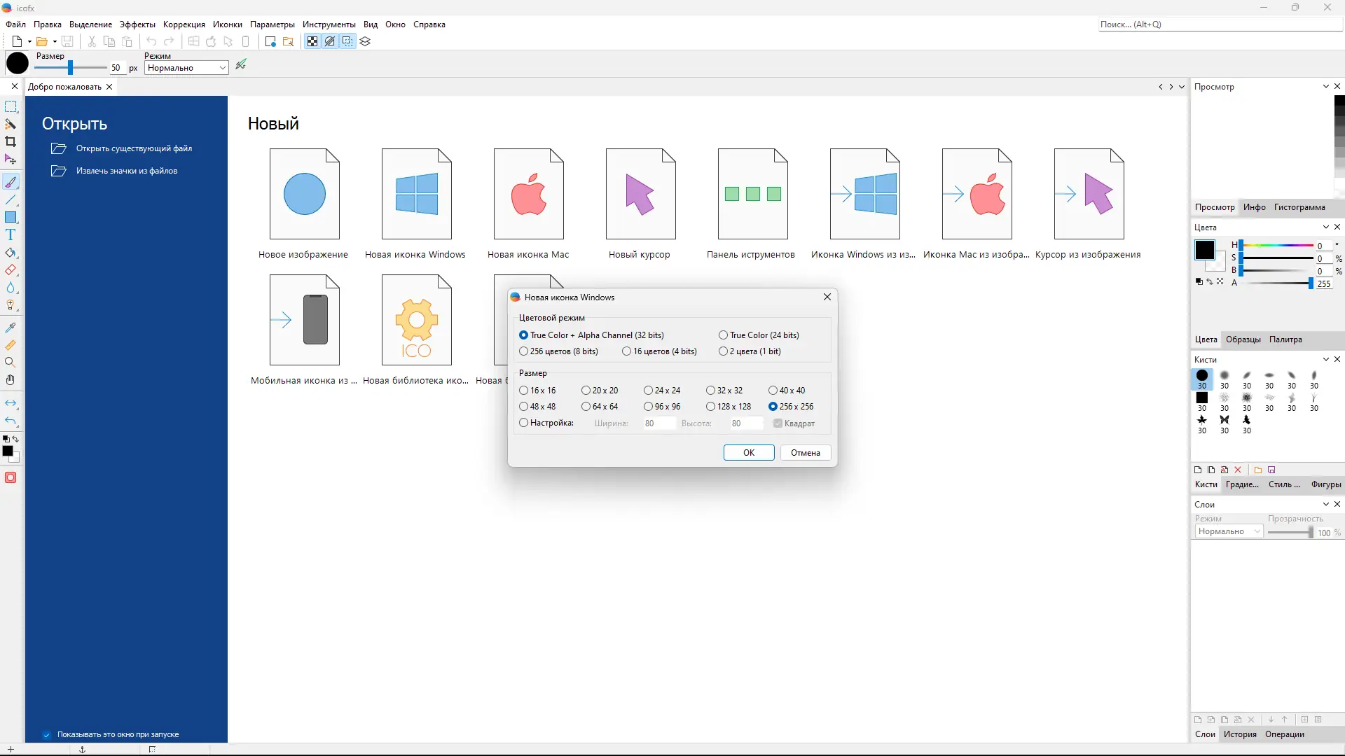 Использование IcoFX не требует глубоких знаний в области графического дизайна. После открытия программы можно создать новую иконку, выбрав нужный размер и цветовую глубину, или импортировать изображение из другого формата. Работа со слоями напоминает принципы, знакомые по редакторам вроде Photoshop, что упрощает освоение. Доступны инструменты кисти, ластика, выделения, заливки, а также векторные формы, включая новые svg-шейпы, появившиеся в версии 3.8. После завершения редактирования файл можно экспортировать в нужный формат или сохранить как часть ресурса приложения.