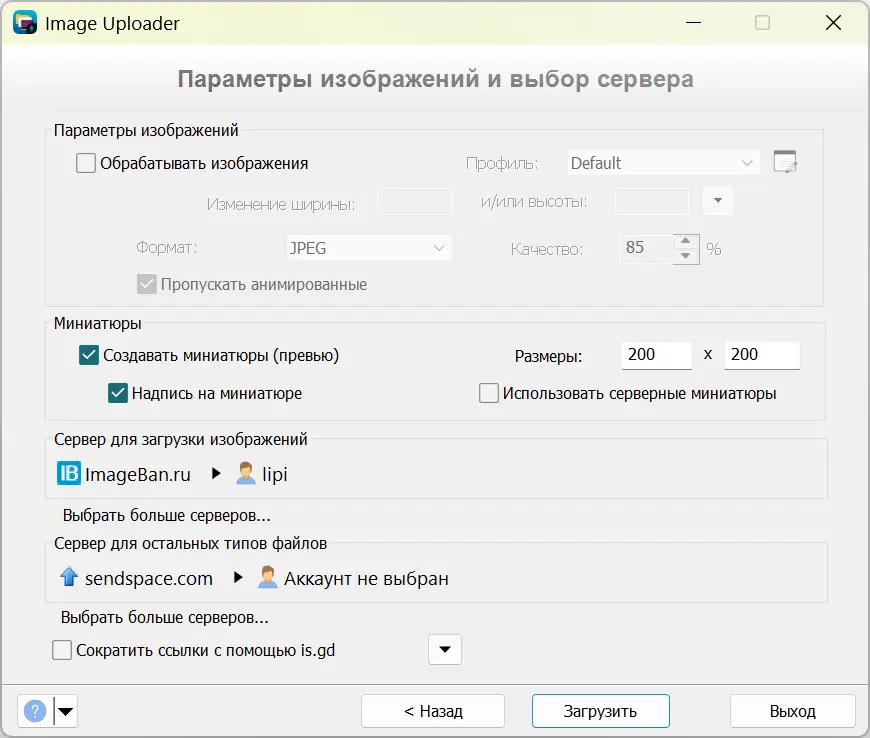 Image Uploader предлагает широкий функционал при минимальных требованиях к системе. Программа стабильно работает на всех актуальных версиях Windows и не требует сложной настройки. Благодаря встроенной поддержке FFmpeg, она способна обрабатывать видео без необходимости установки сторонних кодеков. Удобный интерфейс и гибкие настройки делают инструмент полезным как для новичков, так и для опытных пользователей, ведущих активную онлайн-деятельность.