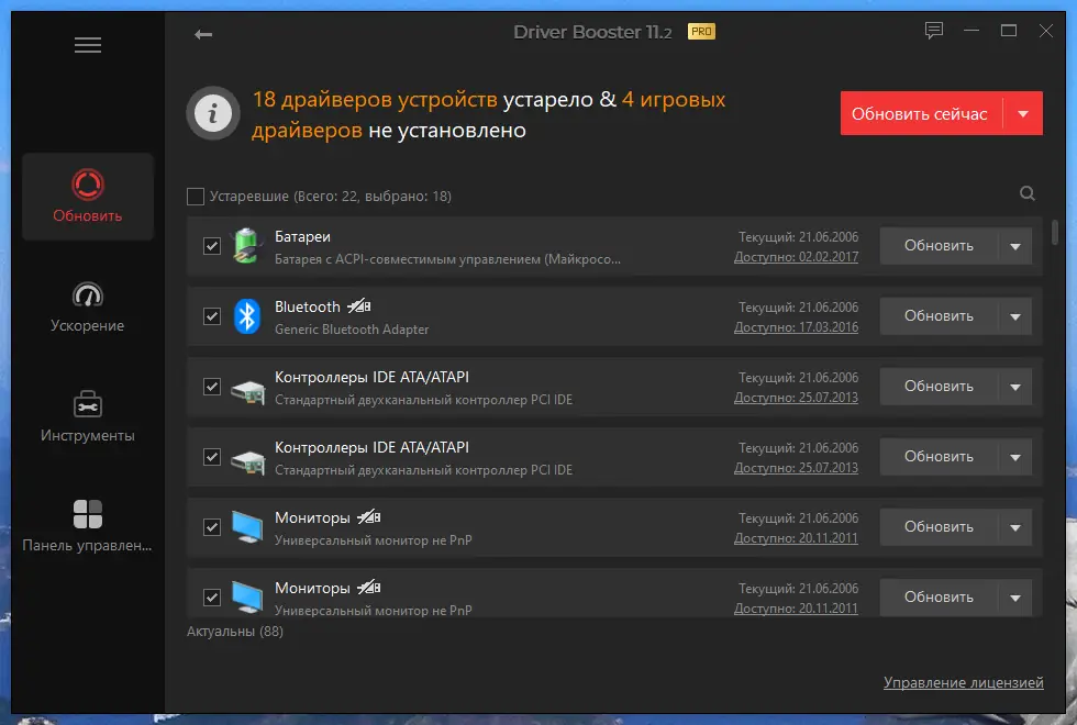 IObit Driver Booster — это мощное приложение, ориентированное на поддержание драйверов в актуальном состоянии. Программа проводит глубокое сканирование системы, выявляя устаревшие, повреждённые или отсутствующие компоненты, необходимые для корректной работы устройств. Благодаря расширенной базе данных, она поддерживает широкий спектр оборудования, включая видеокарты, звуковые и сетевые адаптеры, чипсеты и периферийные устройства.