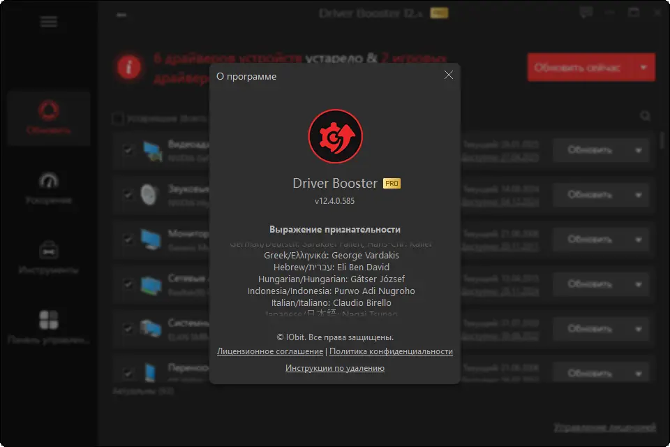 Программа IObit Driver Booster предназначена для автоматической диагностики и обновления драйверов на компьютере. Она эффективно распознаёт компоненты системы, сравнивает их версии с актуальными в обширной базе данных и предлагает обновления. Механизм сканирования был усовершенствован и теперь работает на 20% быстрее, что сокращает время ожидания и повышает точность. Все предлагаемые драйверы проходят двойную проверку — как через Microsoft WHQL, так и через внутренний тест IObit Review, что гарантирует их безопасность и стабильность.