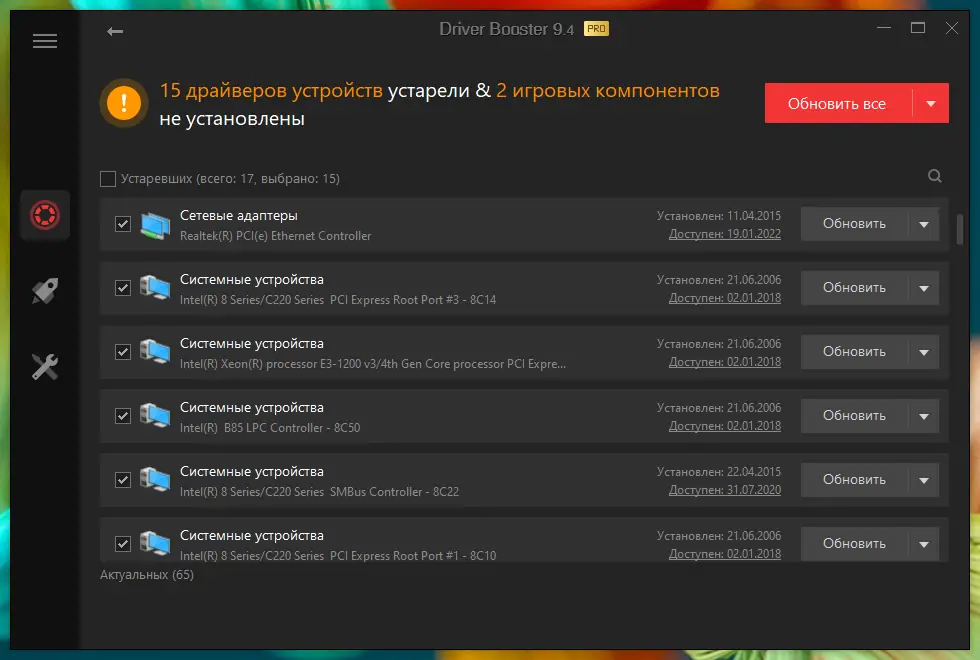 - Автоматическое сканирование системы на наличие устаревших драйверов
