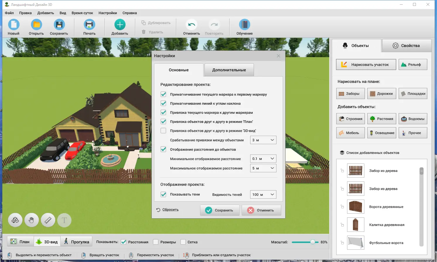 Ландшафтный Дизайн 3D — это удобная программа для создания реалистичных проектов участков любой формы и назначения. С её помощью можно размещать здания, растения, дорожки и другие элементы, а затем просматривать результат в трёхмерном формате. Инструмент подходит как для домашнего использования, так и при подготовке к реальной благоустройстве территории.