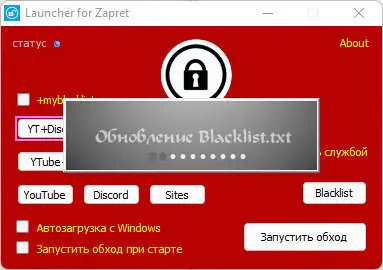 Использование приложения не требует глубоких технических знаний. После установки комплекта для обхода блокировок, соответствующего разрядности системы (x86 или x64), необходимо запустить Launcher for Zapret. Через контекстное меню в области уведомлений можно выбрать подходящий профиль, например, YouTube+Sites или YT+Dc, в зависимости от текущих задач. Кнопка «Blacklist» позволяет обновить список заблокированных ресурсов, а функция сворачивания в трей делает работу с программой менее заметной. Автозагрузка настроена корректно, начиная с версии 1.7, что позволяет запускать утилиту вместе с системой без дополнительных действий.