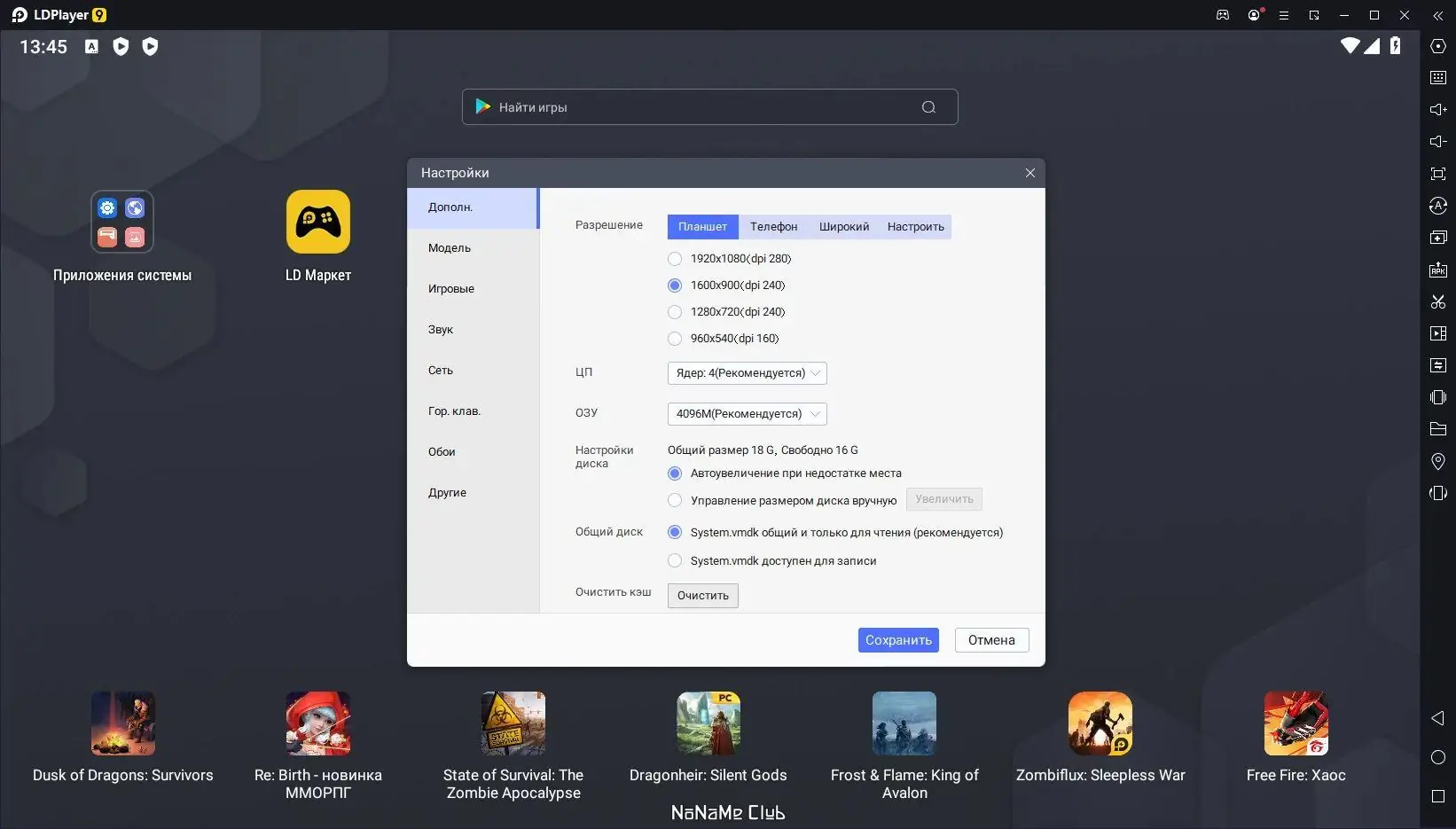 - Поддержка установки приложений из Google Play и специализированного магазина LD Store.