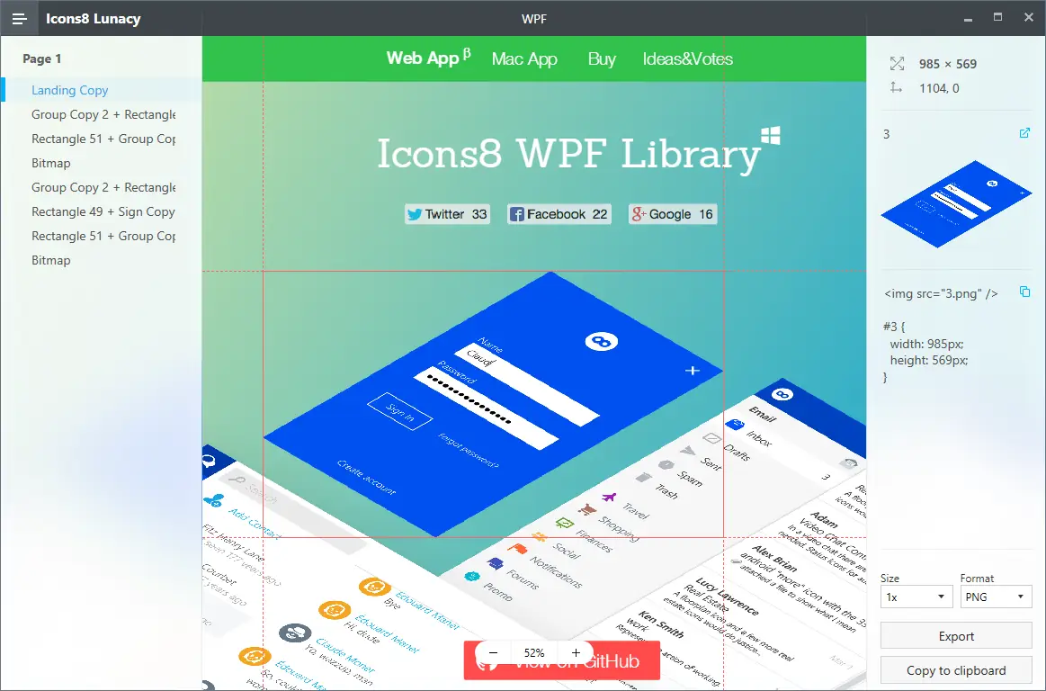 Icons8 Lunacy — это автономное приложение для Windows, позволяющее открывать, просматривать и экспортировать файлы формата Sketch без необходимости подключения к интернету. Программа ориентирована на дизайнеров и разработчиков, которым требуется работать с макетами на платформе, не поддерживающей нативное открытие Sketch. Инструмент обеспечивает высокую точность отображения слоёв, стилей и шрифтов, сохраняя структуру проекта.
